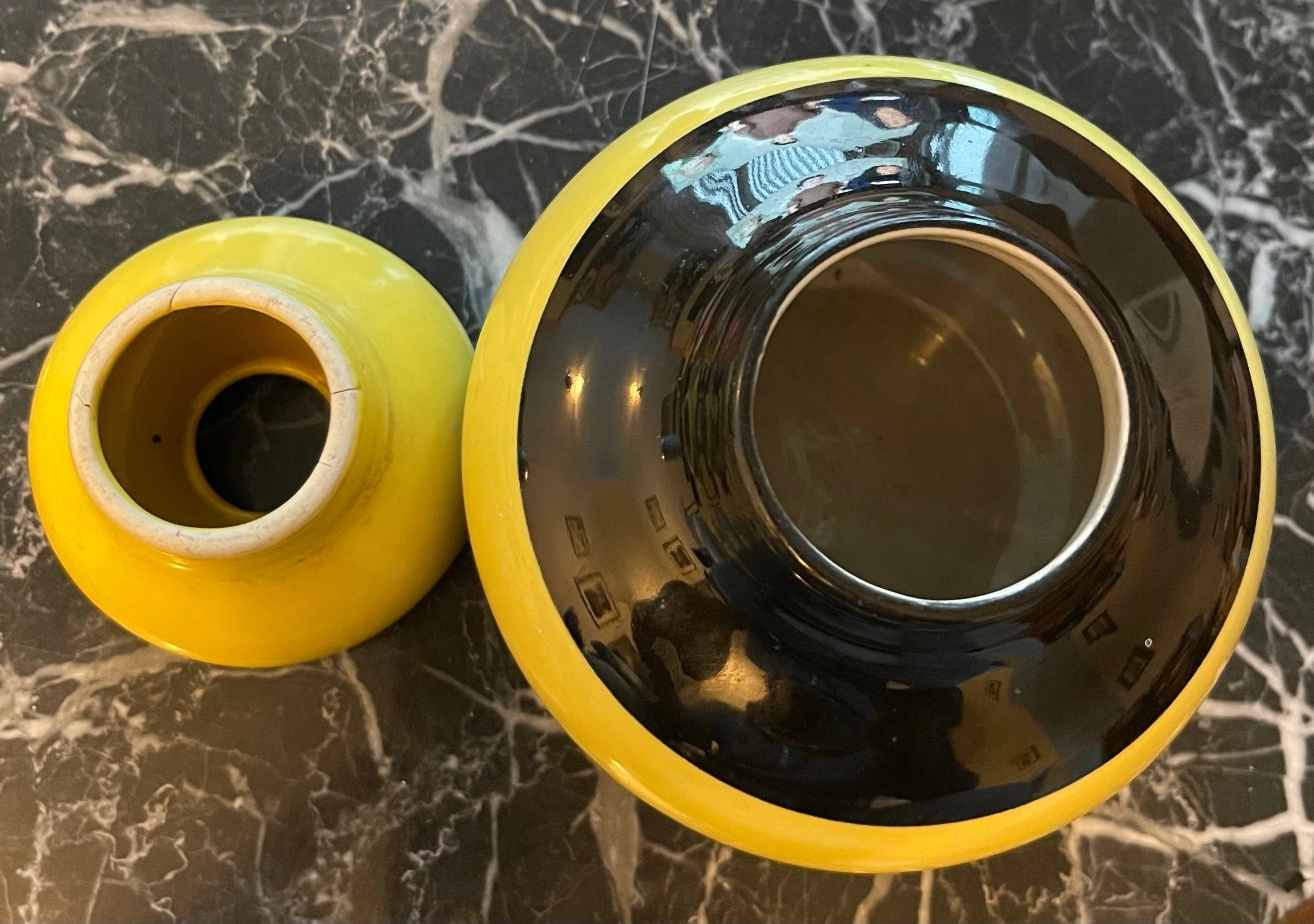 Beautiful designer jar by famous Swedish designer Matz Borgström for Sagaform. Features a striking yellow and black colour scheme with a high-gloss finish.