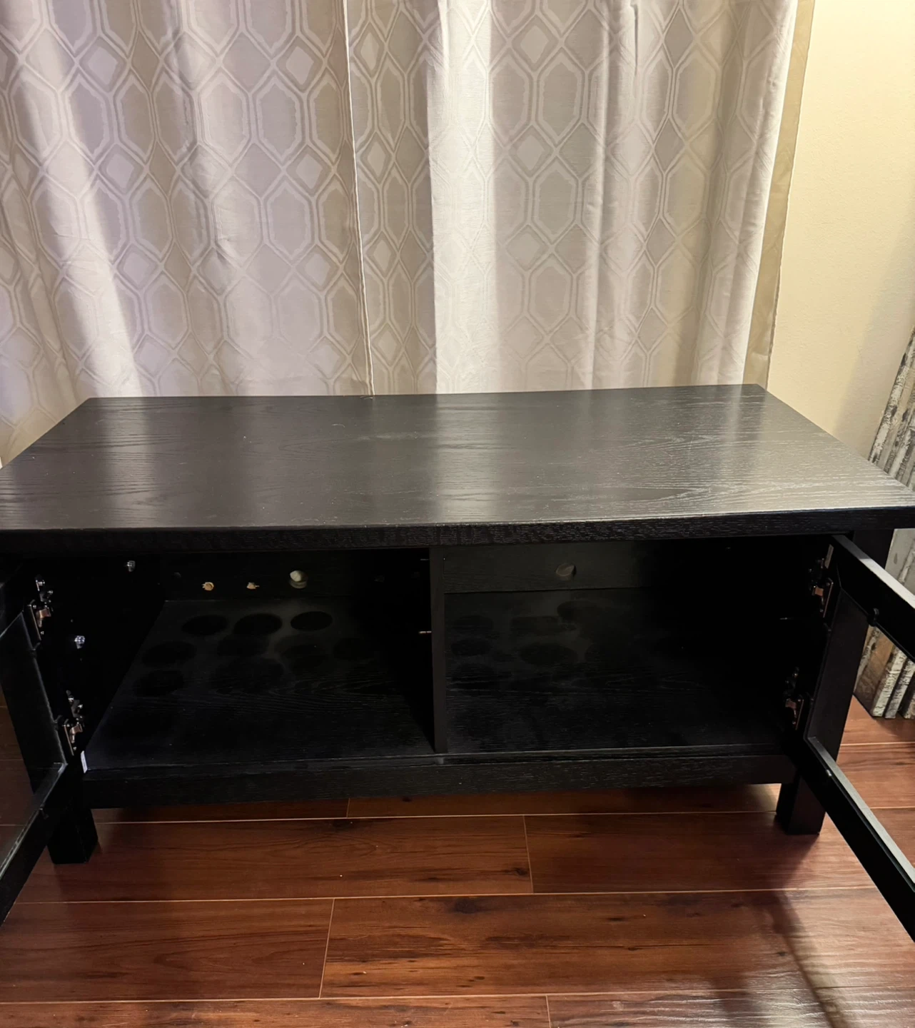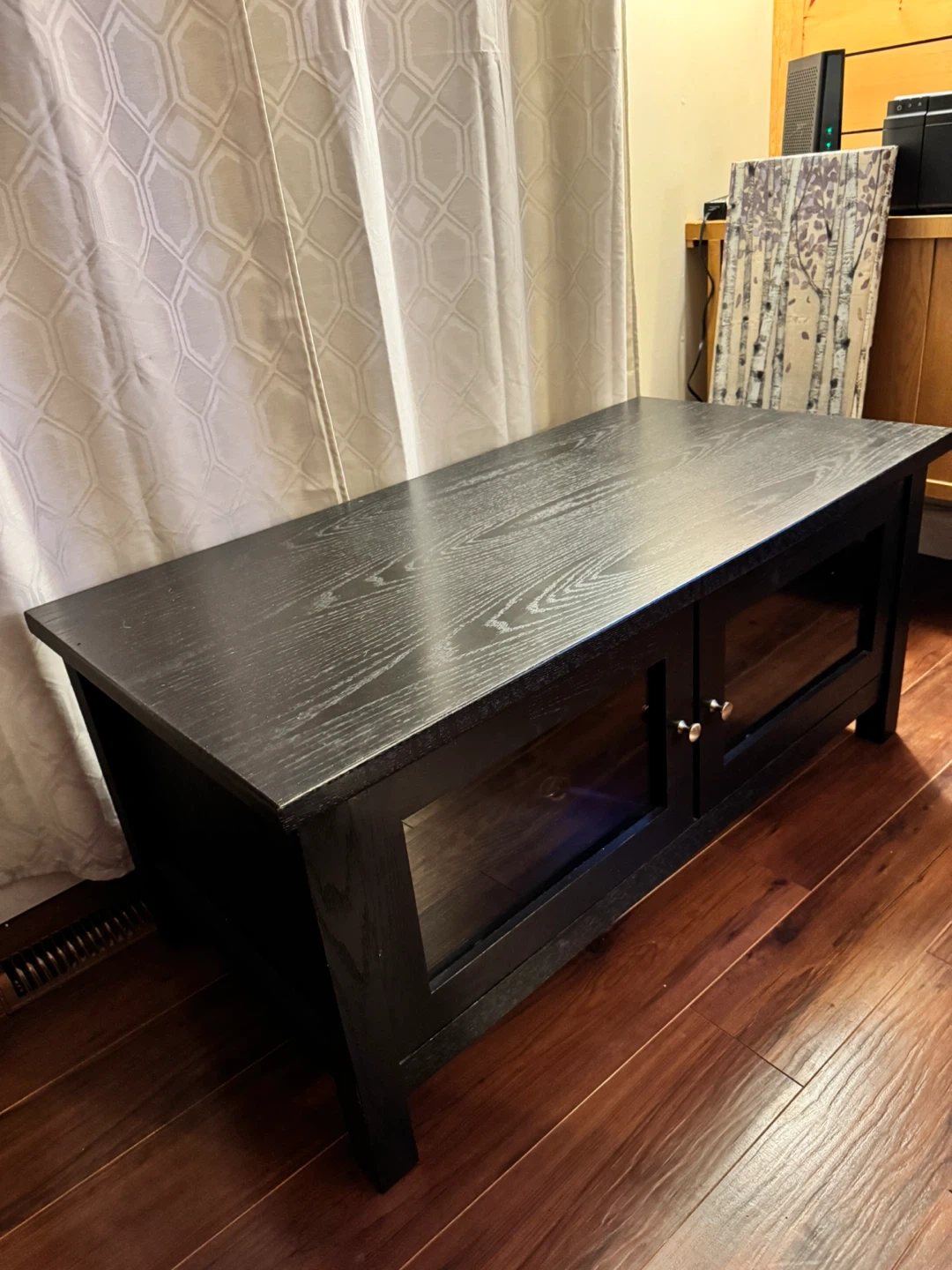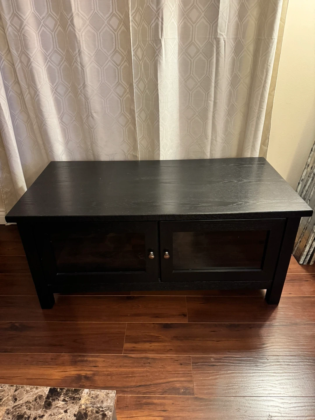 Buy & SellBlack TV Stand with Glass DoorsBlack TV Stand with Glass Doors$70Black TV stand with two glass-front cabinet doors and an open shelf. Unit is heavy. Measurements - 46.5” L 23.5” W 21” HConditionGoodWHERE TO MEETCheck LocationView MapSELLERverifiedVincentOlden731 review0 chats·0 favorites·10 viewsSEND CHAT TO SELLERHi Vincent! I’m interested in your listing.Hi Vincent! I’m interested in your listing.Get the Karrot app to chatSign In to chat