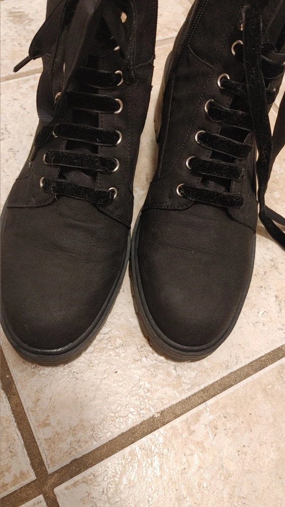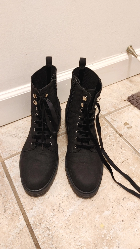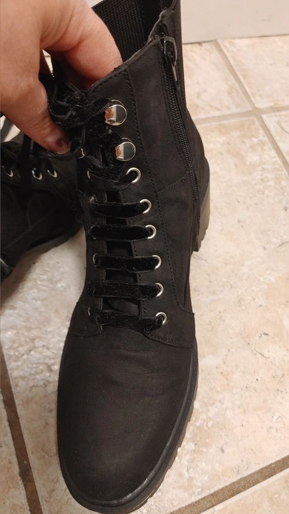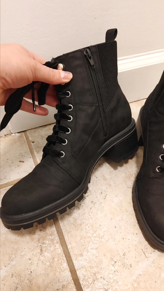 Black Lace-Up Combat Boots with Side Zipper size 9.5