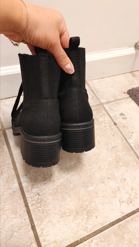 These black combat boots feature a lace-up front and a convenient side zipper for easy wear. The chunky heel and lug sole add a stylish touch.