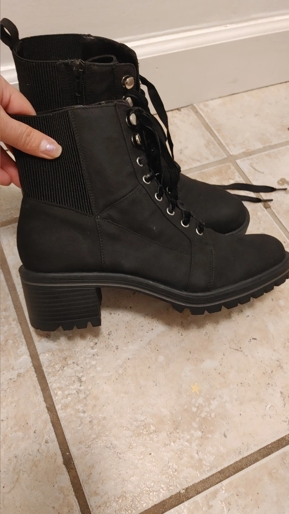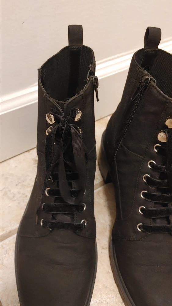 Black Lace-Up Combat Boots with Side Zipper size 9.5