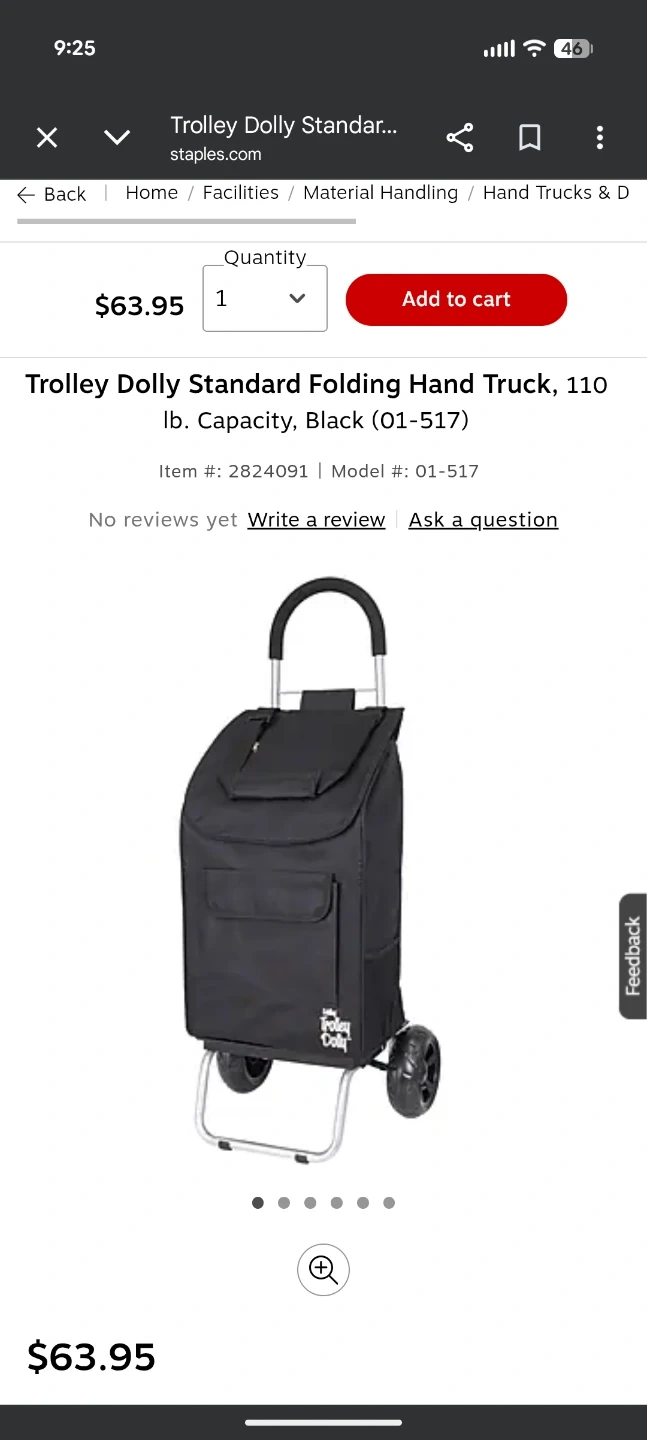 This Folding Trolley Dolly is a great way to transport groceries or laundry. It's a lightweight and portable cart that can hold up to 110 lbs. The bag is red and features a mesh side pocket. It folds flat for easy storage.
