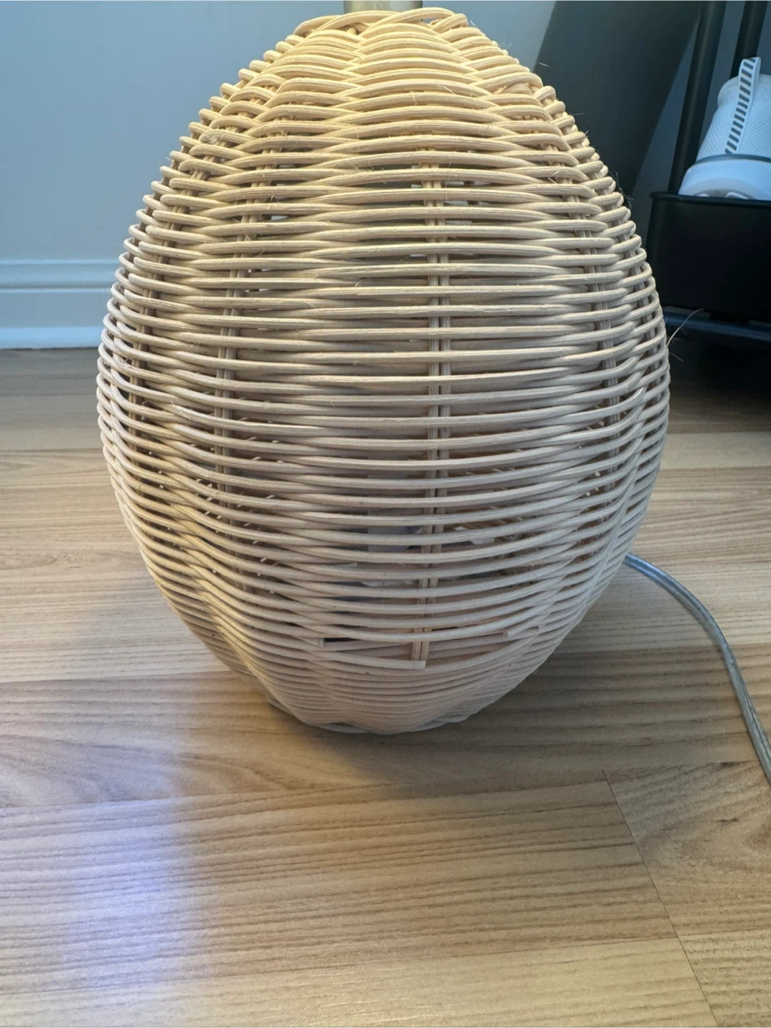 This is the Thea Natural Table Lamp by Sand & Stable. It's a lovely woven table lamp with a natural finish. Dimensions are 20" H x 11" W x 11" D. In good condition, some minor imperfections (see pictures). 2 for sale.