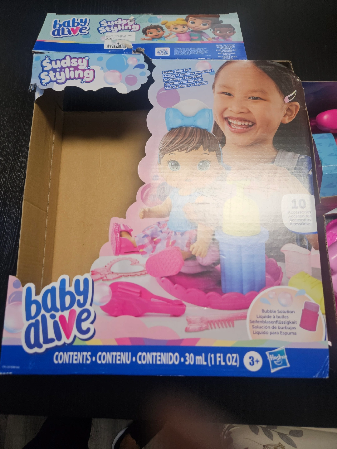 Selling a brand new Baby Alive Sudsy Styling doll! It comes with 10 accessories for fun, bubbly salon play. Recommended for ages 3+. The box is included and contains everything you need to create fun hairstyles for your Baby Alive doll