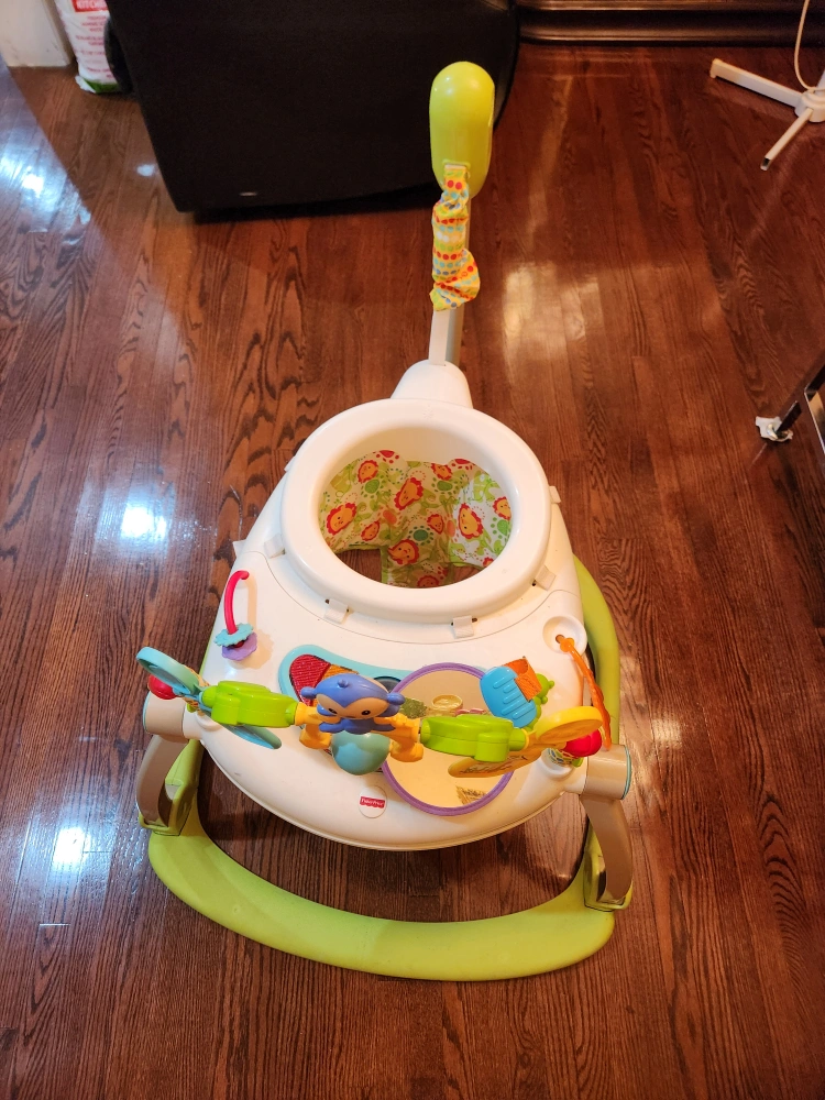 Fun baby jumperoo. Features include multiple activities and a comfortable seat. Great for encouraging development and entertainment.