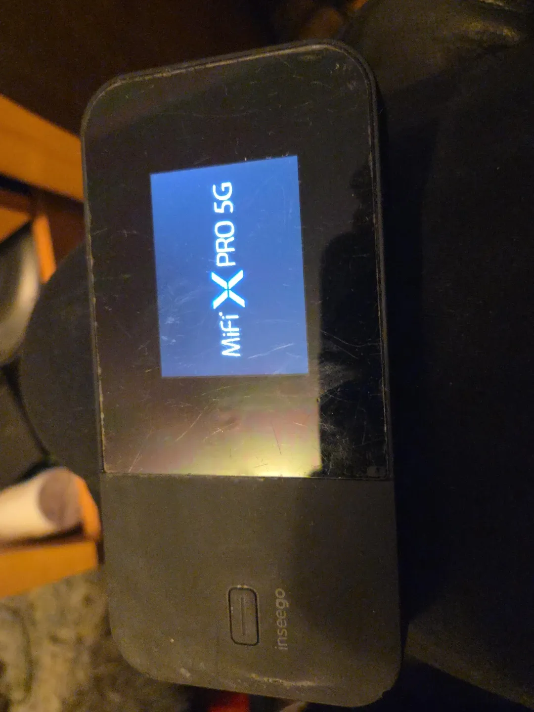 This is an Inseego MiFi X PRO 5G mobile hotspot. It's a portable device for internet access. It supports 5G connectivity.