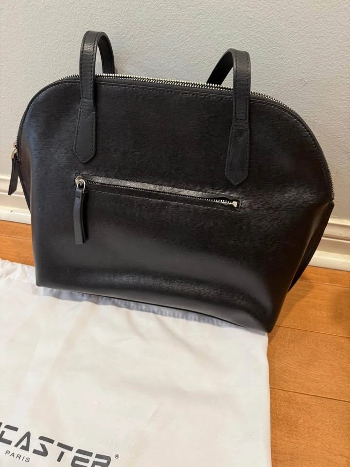 LANCASTER is a popular French high-end leather good brand. This is from their Smooth line, crafted from soft and smooth cowhide leather with a silky texture. It features zipped pockets inside and at the back, a cell-phone compartment, and a simple inside pocket. Dimensions: 32.0x28.0x15.0 cm. To clean, carefully rub the leather with a soft pale cloth using a suitable colorless and neutral cream, or gentle make-up remover. Small stains can be faded with a white eraser before applying cream.