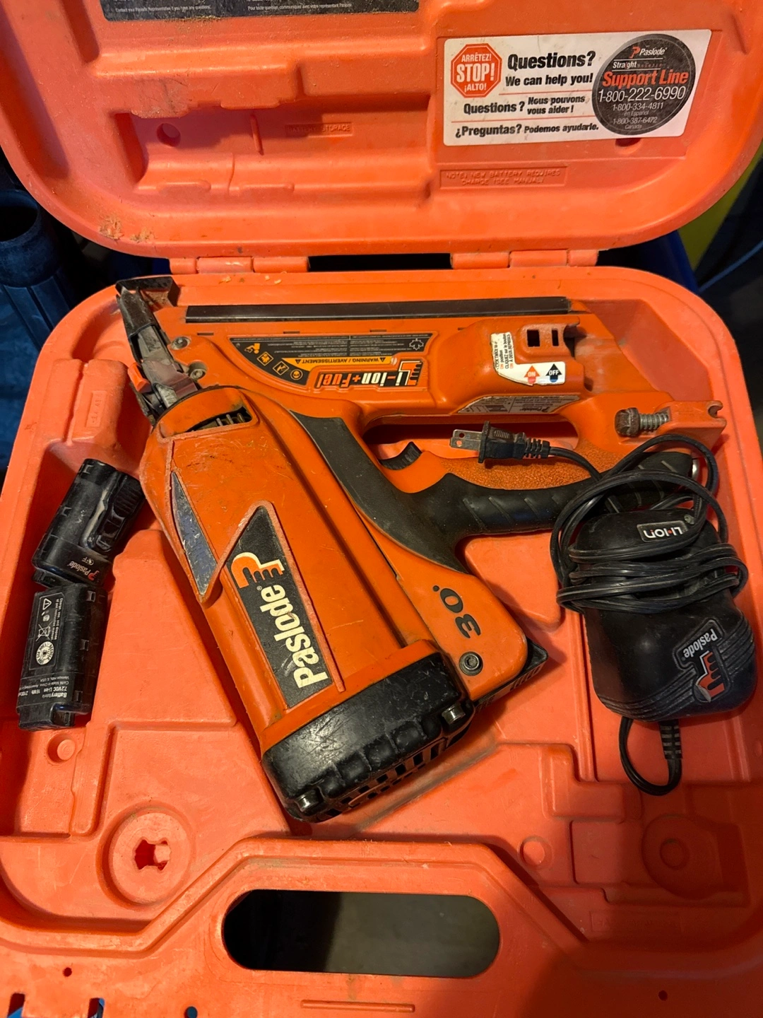Selling a Paslode cordless nail gun, complete with its case and charger! It's in good working condition and ready for your next project. Includes the battery and charger, so you're all set to go. Perfect for anyone looking for a reliable and portable nail gun for framing or other construction tasks