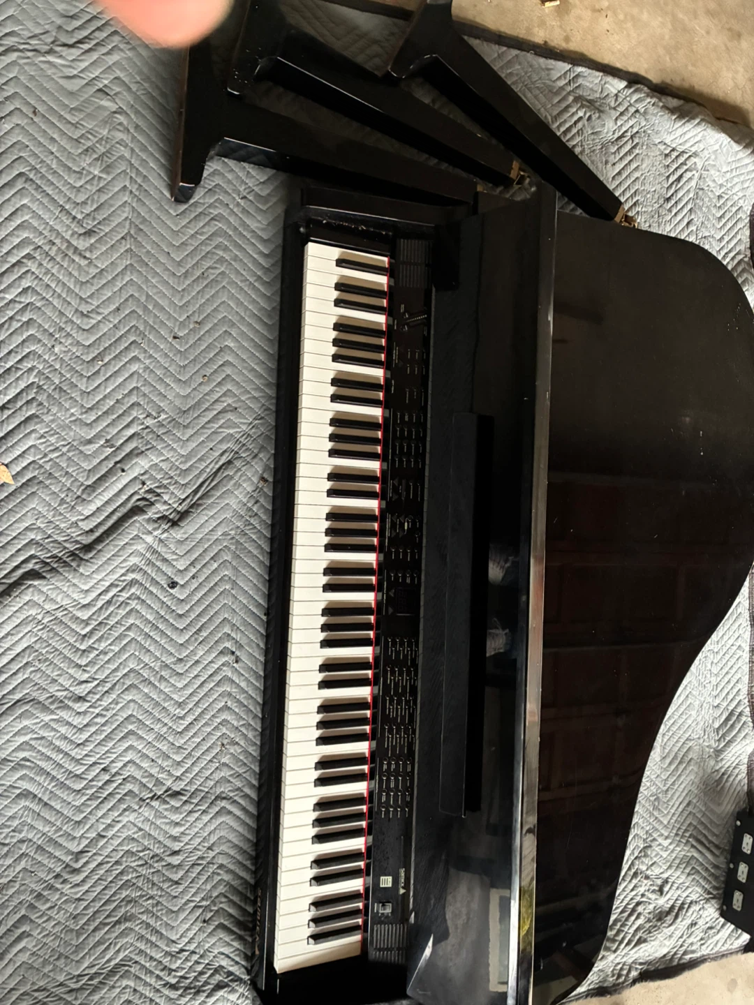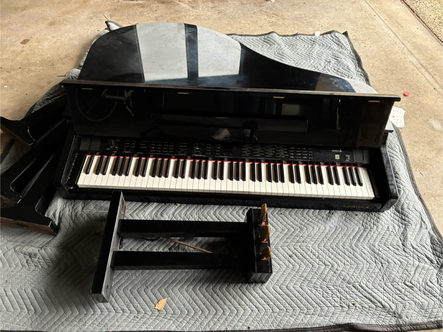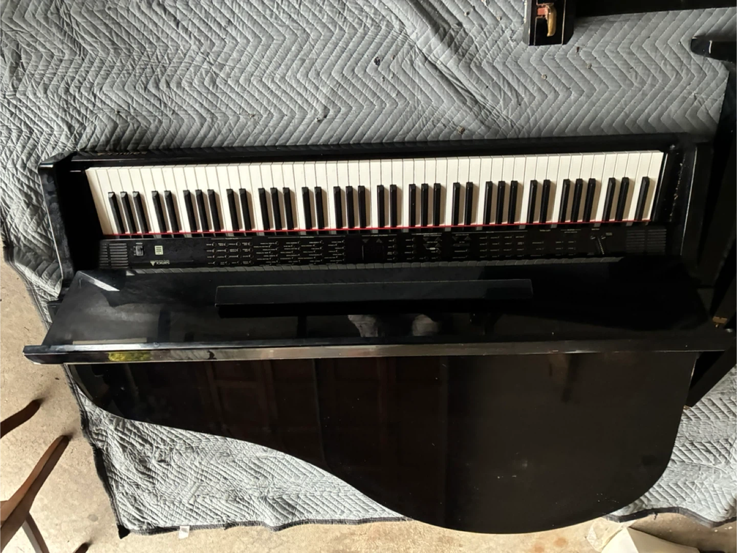 This is a Samick Digital Piano, model SGP-151G. It's black and features a full keyboard with various sound options. Power consumption is 66W.
