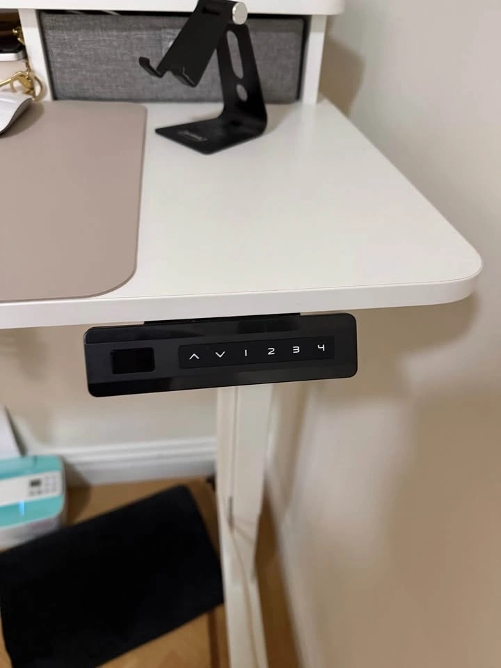 Height adjustment between 27.36''-46.06''. Industrial-grade alloy steel frame combined with a solid desktop that allows for a 176 lbs weight capacity. Standing desk has 3 programmable memory height buttons.