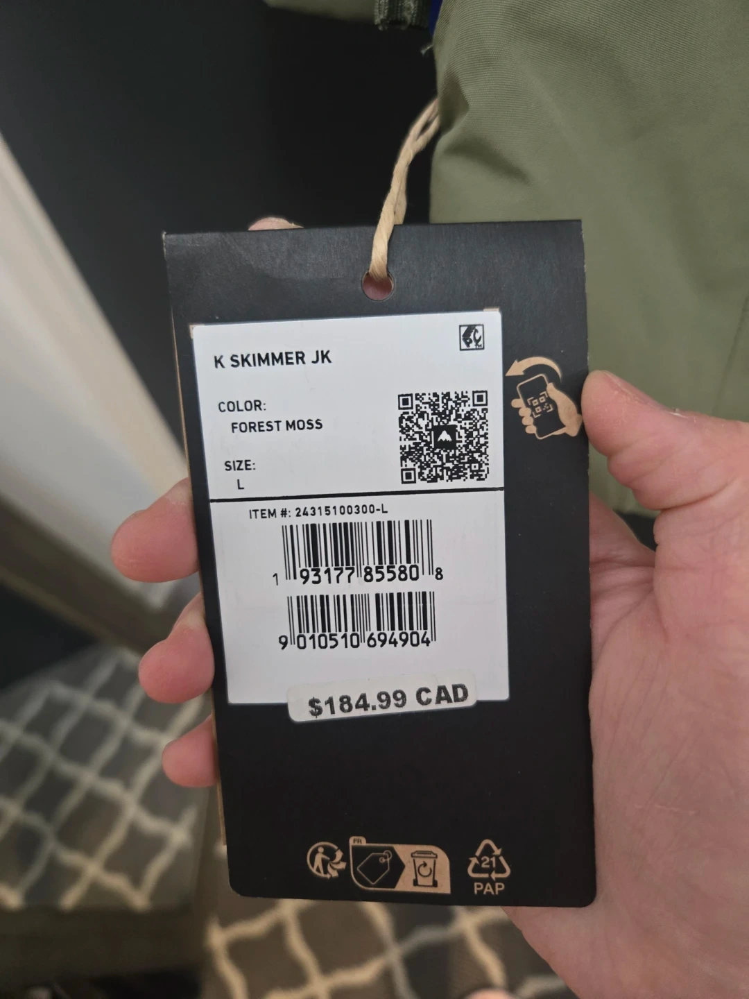 Burton K Skymm Jk Jacket in Forest Moss colour. It's a size Large. This jacket is perfect for hitting the slopes!