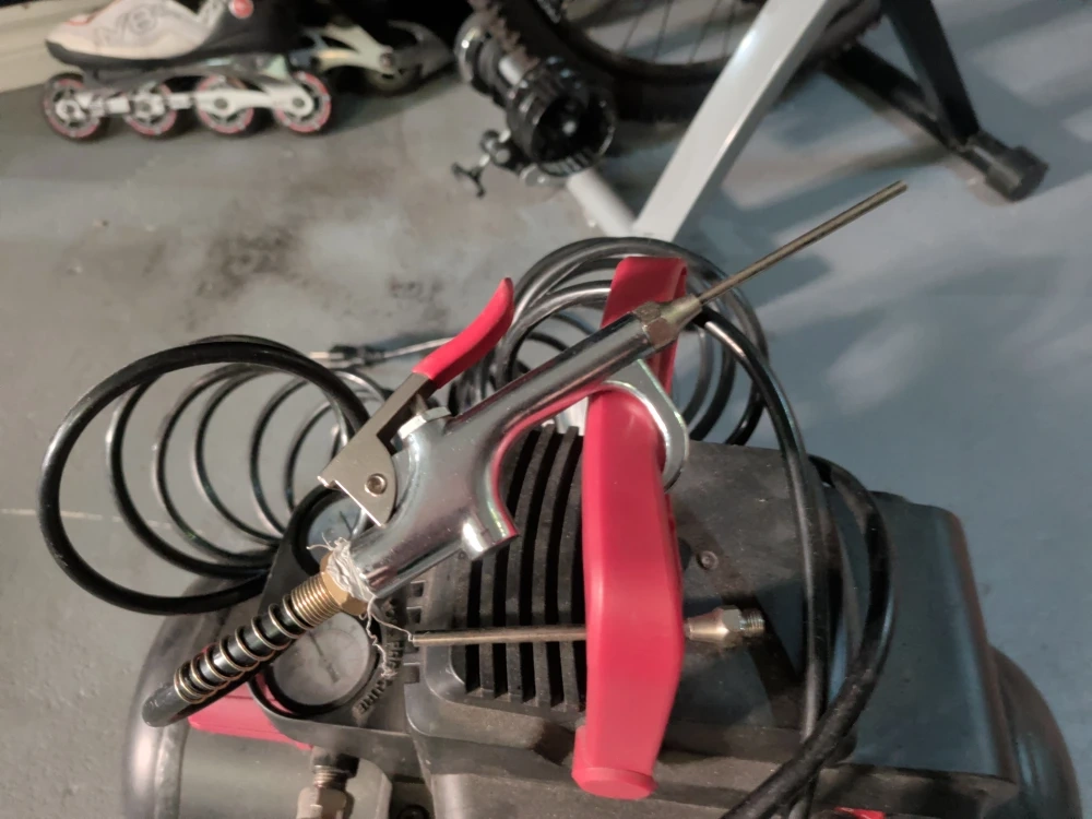Selling a Briggs & Stratton air compressor. It's a 3-gallon, 125 PSI max, oil-free pump. The model number is 074086-00 / 0100341A. It operates at 120V 60Hz 3.0A. The manufacturing date is 2020 August 25. Comes with 2 sizes attachment for air gun.