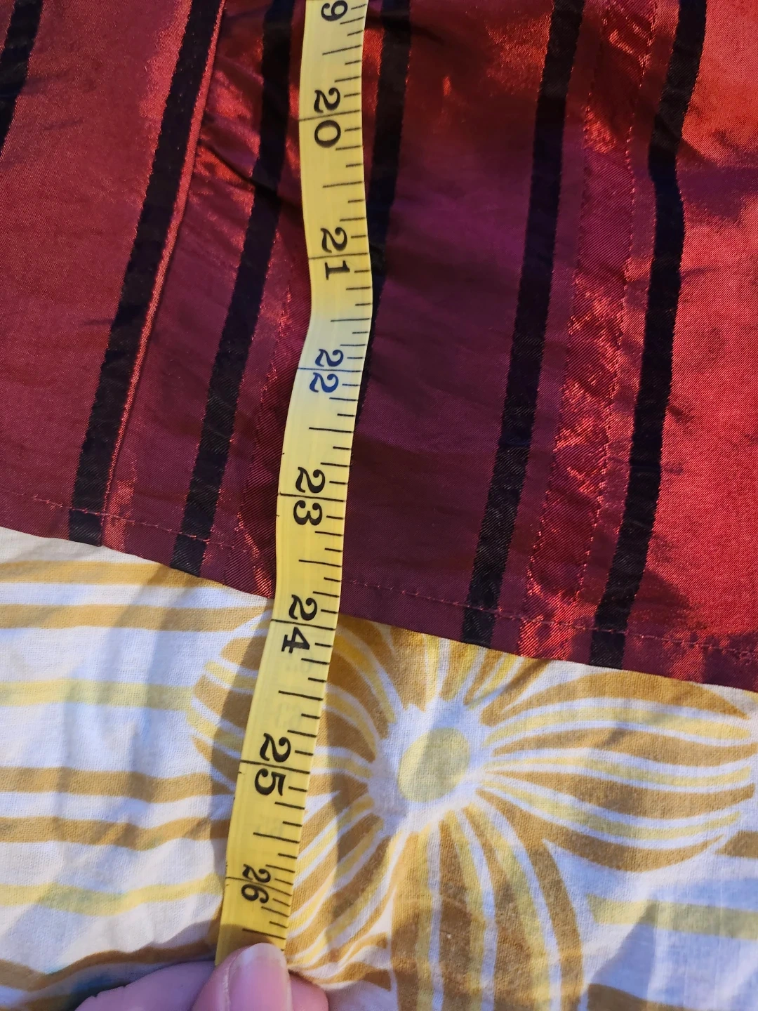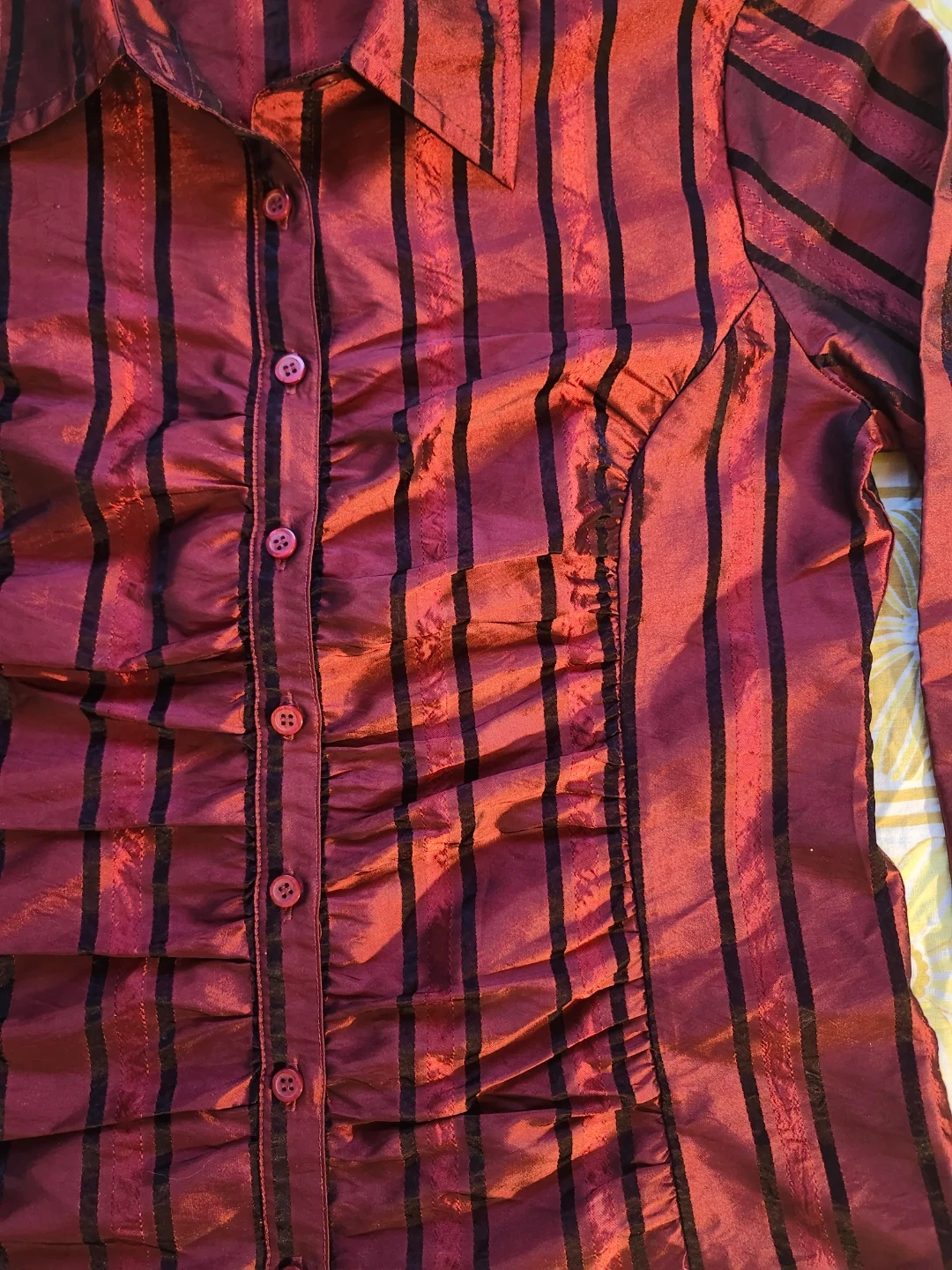 Red and black pinstripe blouse