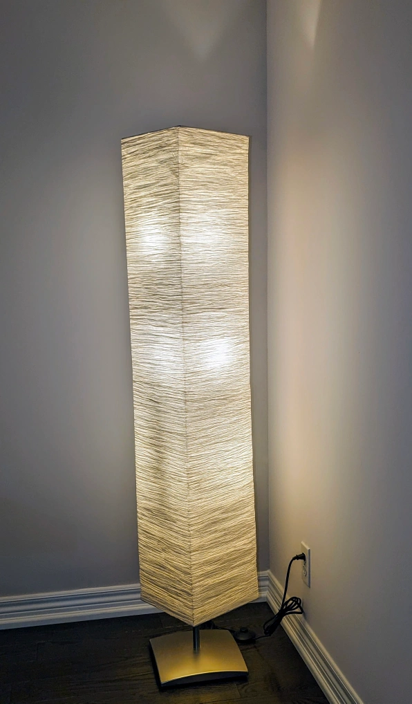This floor lamp with the Japanese paper lampshade spreads diffused and decorative light to create a soft and cozy atmosphere in your home.