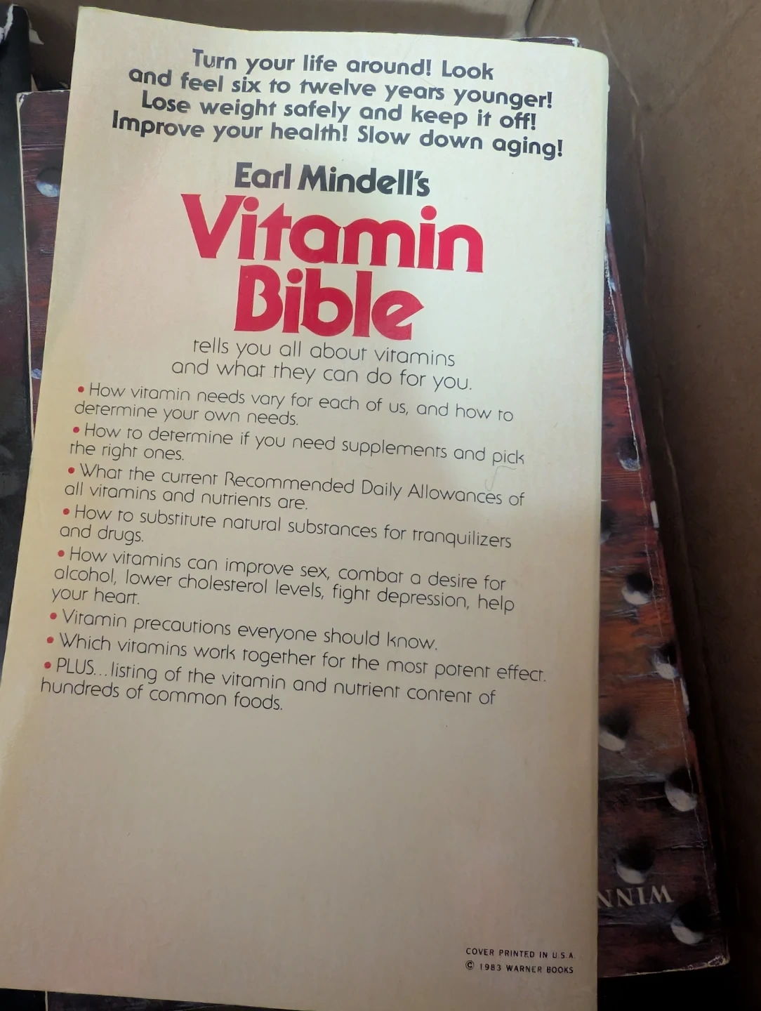 This book by Earl Mindell tells you all about vitamins and what they can do for you. It covers how vitamin needs vary, how to pick the right supplements, and recommended daily allowances. It also discusses how vitamins can improve sex, combat alcohol desire, lower cholesterol, fight depression, and help your heart.