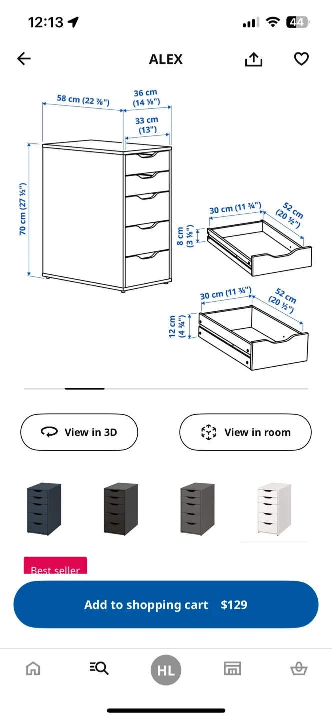 Selling a white IKEA Alex drawer unit with 5 drawers. It's in great condition and ready for a new home! The unit measures 70 cm (27 1/2") in height, 36 cm (14 1/8") in width, and 58 cm (22 7/8") in depth