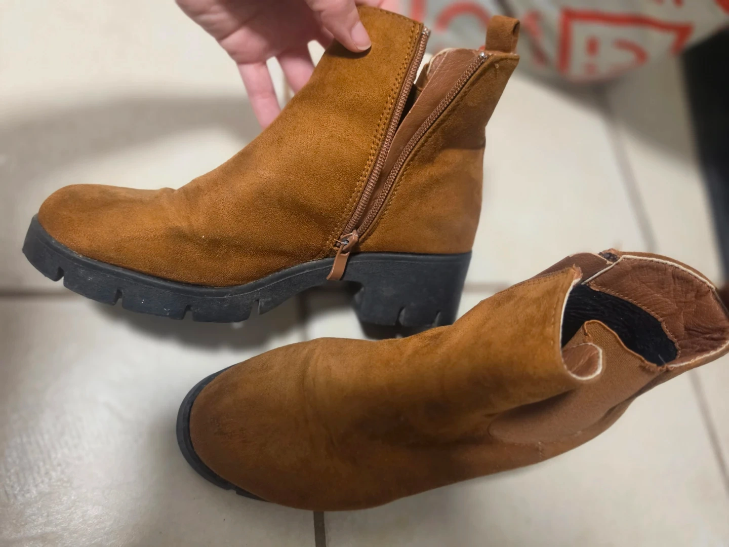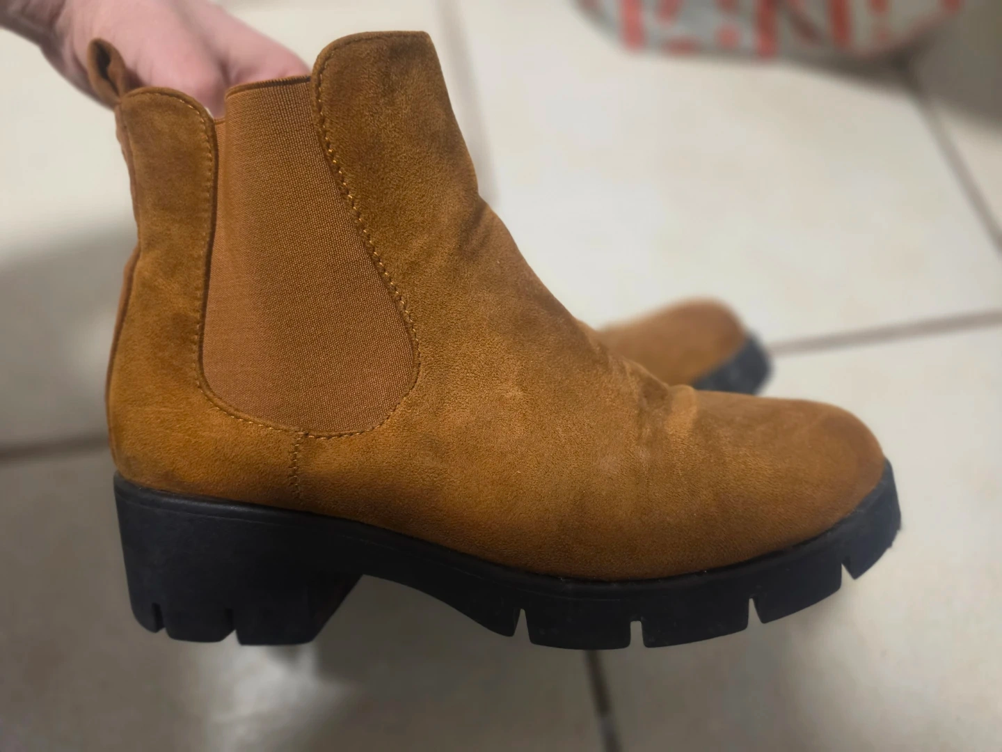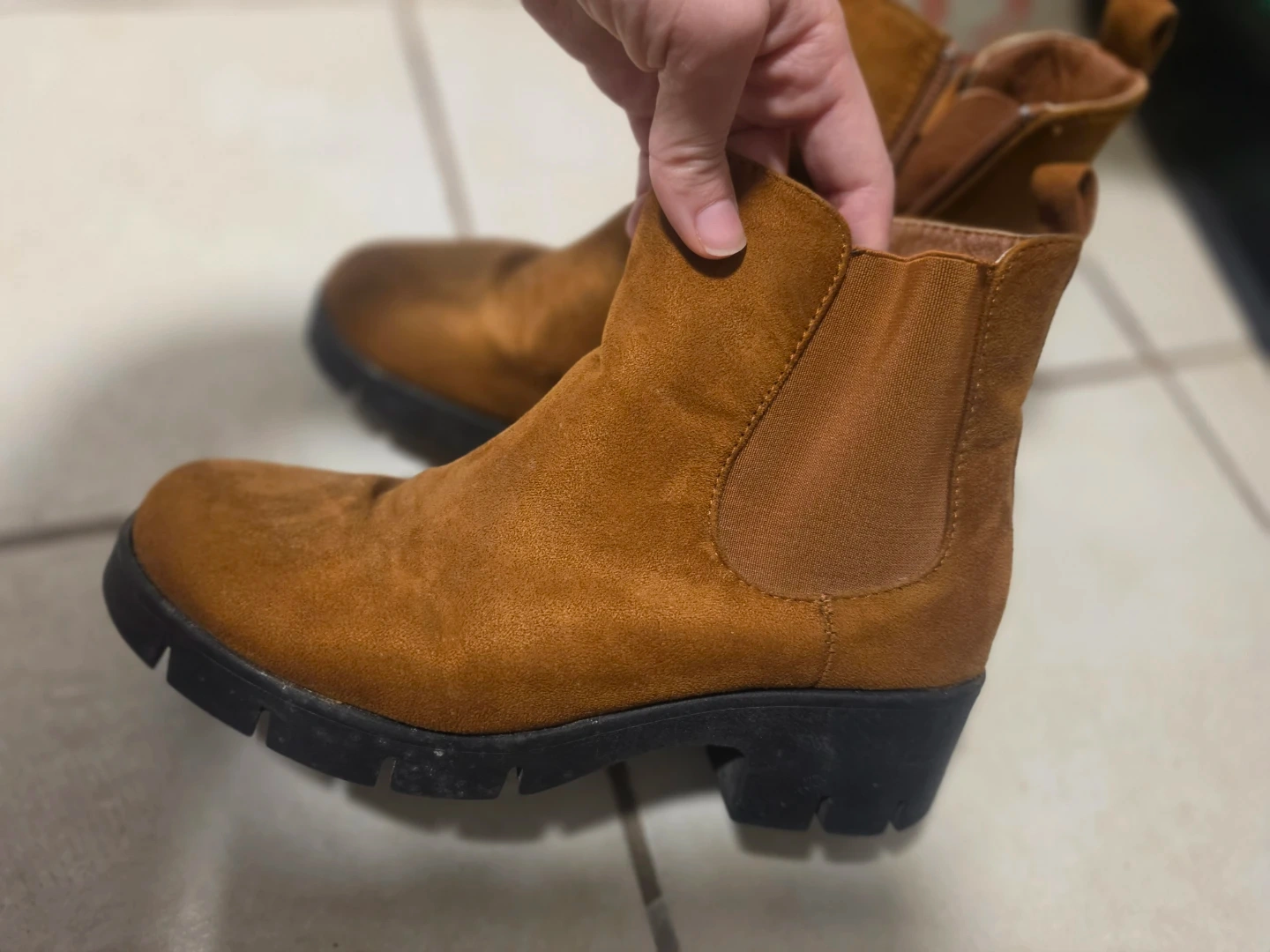 Buy & SellWomen's Suede Chelsea Boots - Size EU 38Women's Suede Chelsea Boots - Size EU 38$9Stylish tan suede Chelsea boots with a side zipper and elastic gore. They've got a chunky lug sole for good grip. Perfect for everyday wear.SizeEU 38WHERE TO MEETGormley Ave x Oriole PkyView MapSELLERverifiedAmyDavisville Village35727 reviews0 chats·1 favorites·35 viewsSEND CHAT TO SELLERHi Amy! I’m interested in your listing.Hi Amy! I’m interested in your listing.Get the Karrot app to chatSign In to chat
