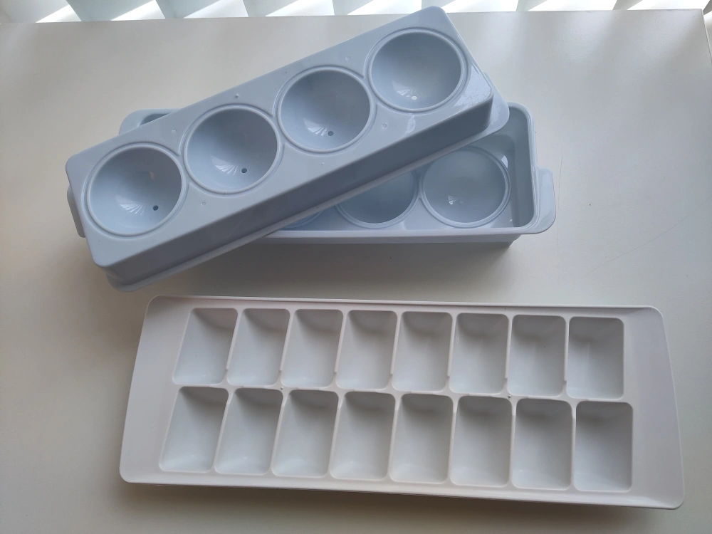Selling two ice cube trays! One makes round ice cubes, and the other makes classic square ones. Both are in great shape and ready to keep your drinks cool this summer