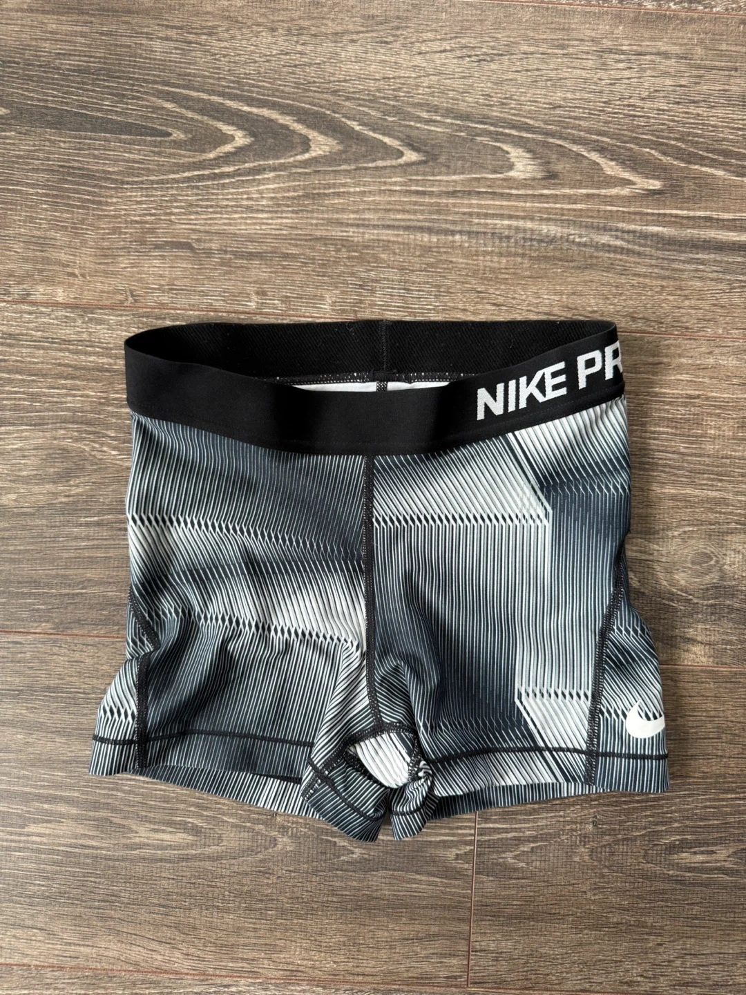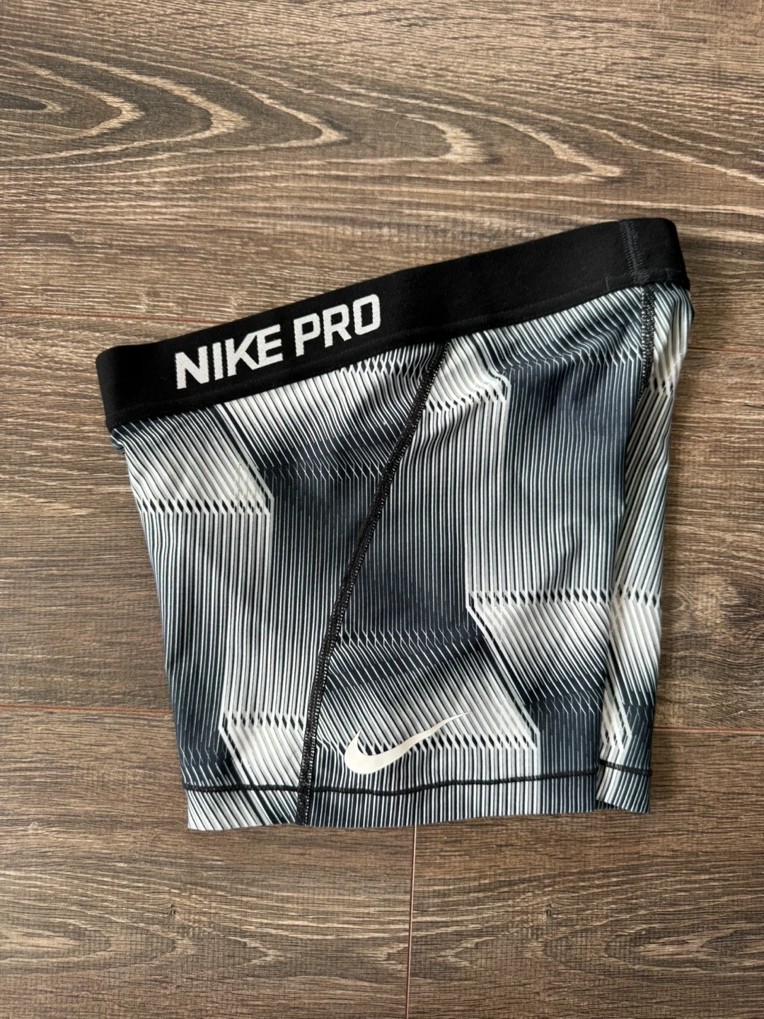 These Nike Pro compression shorts are great for athletic performance. They're made with a stretchy, moisture-wicking fabric. The elastic waistband ensures a secure fit.