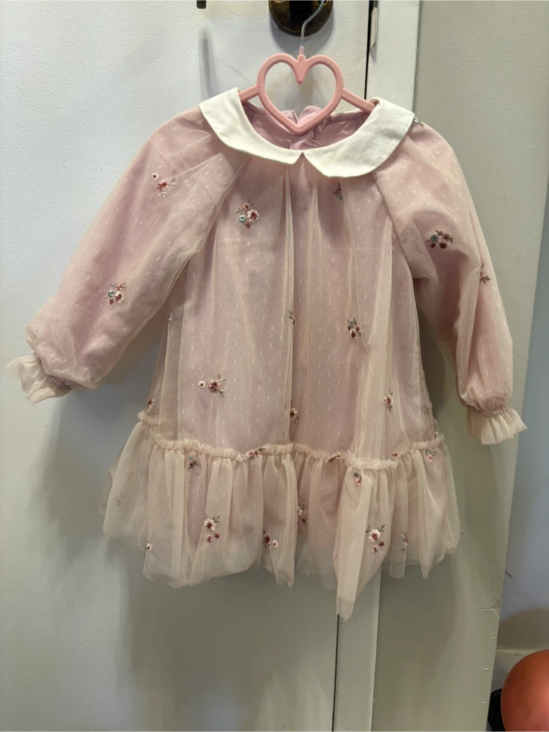 Dave & Bella dress features a lovely pink hue with delicate floral embroidery. It's made with a polyamide outer shell and a polyester inner. Perfect for special occasions!