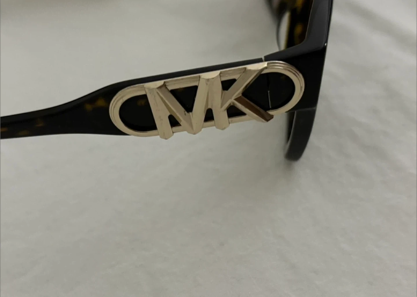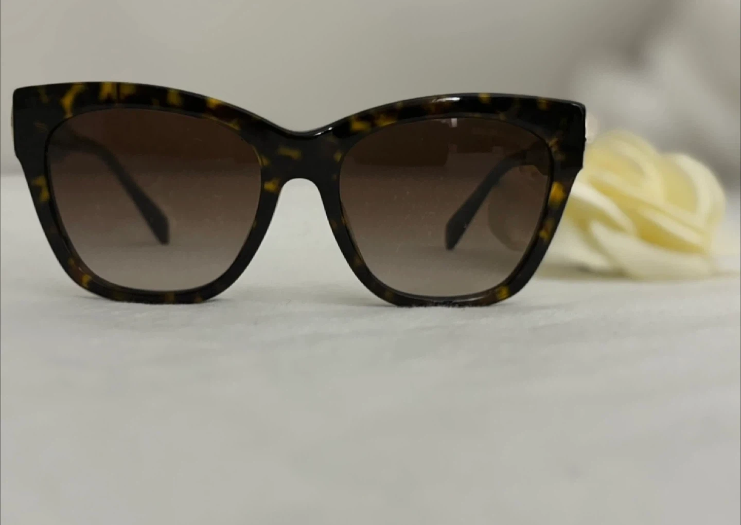 Michael Kors MK2162U "Empire Square" sunglasses in a tortoiseshell pattern with gold MK logos on the sides. The lenses are brown gradient. Lens width 55mm, bridge 18mm, temple length 140mm.