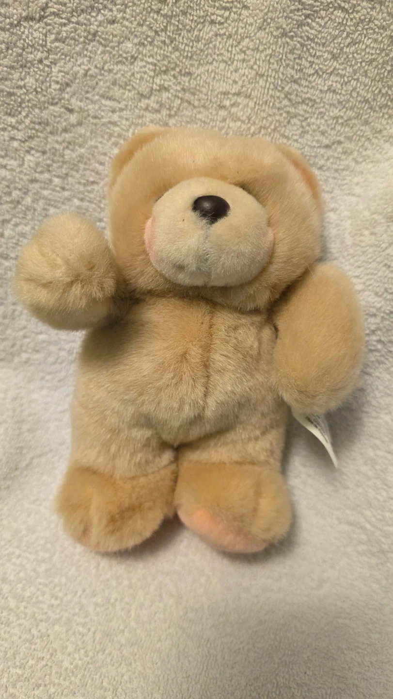 A cute, fuzzy beige teddy bear from the Forever Friends collection. It's made of soft plush material and has a classic teddy bear design. This small bear is perfect for cuddling or as a collectible item.