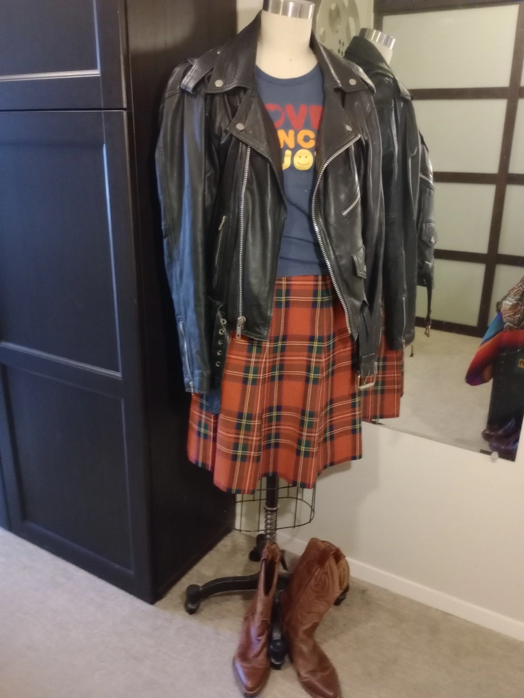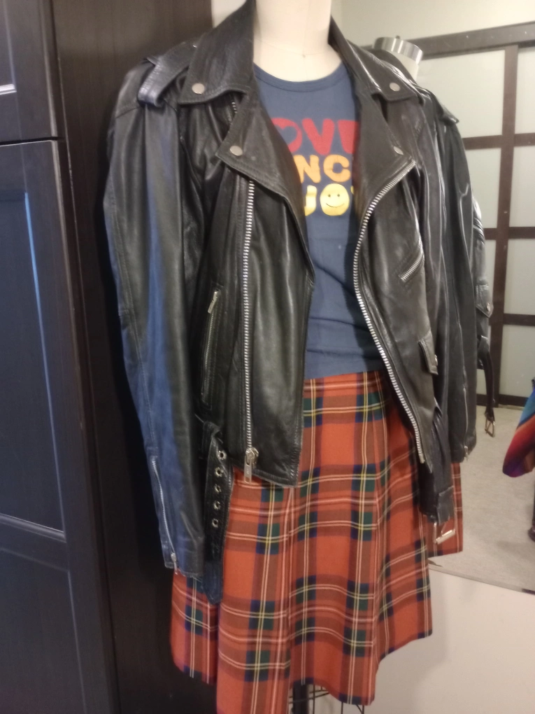 [Vintage (1960's) tartan miniskirt made in England, sold separately.]