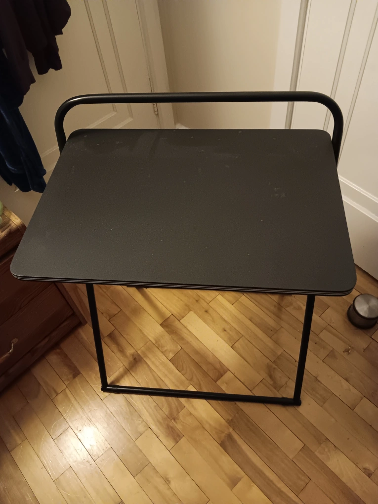 Buy & SellBlack Foldable Laptop TableBlack Foldable Laptop Table$25Small black foldable table. Metal frame. Perfect for small spaces. Carry handle.ConditionLike newWHERE TO MEET58 yeomans streetView MapSELLERverifiedStewart GrantAlbert College831 review0 chats·0 favorites·29 viewsSEND CHAT TO SELLERHi Stewart Grant! I’m interested in your listing.Hi Stewart Grant! I’m interested in your listing.Get the Karrot app to chatSign In to chat