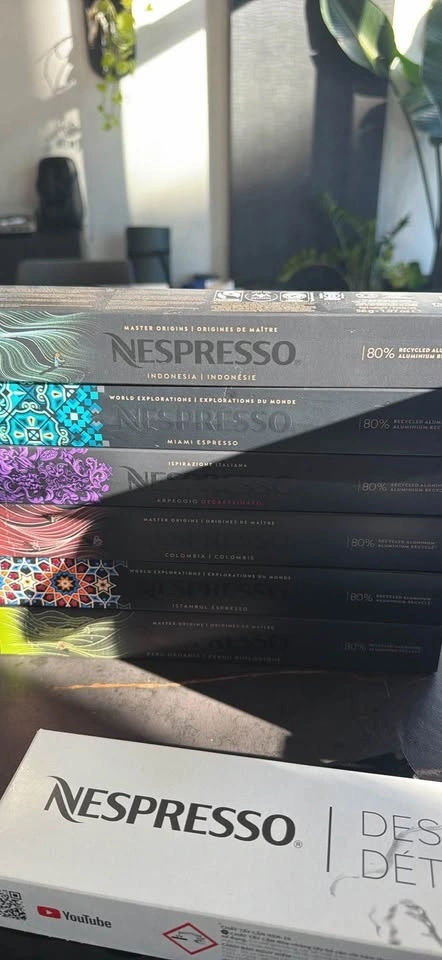 Comes with descaler though it has just been descaled, and a pod recycling bag. Everything you need to start using. I just don’t drink coffee anymore.
