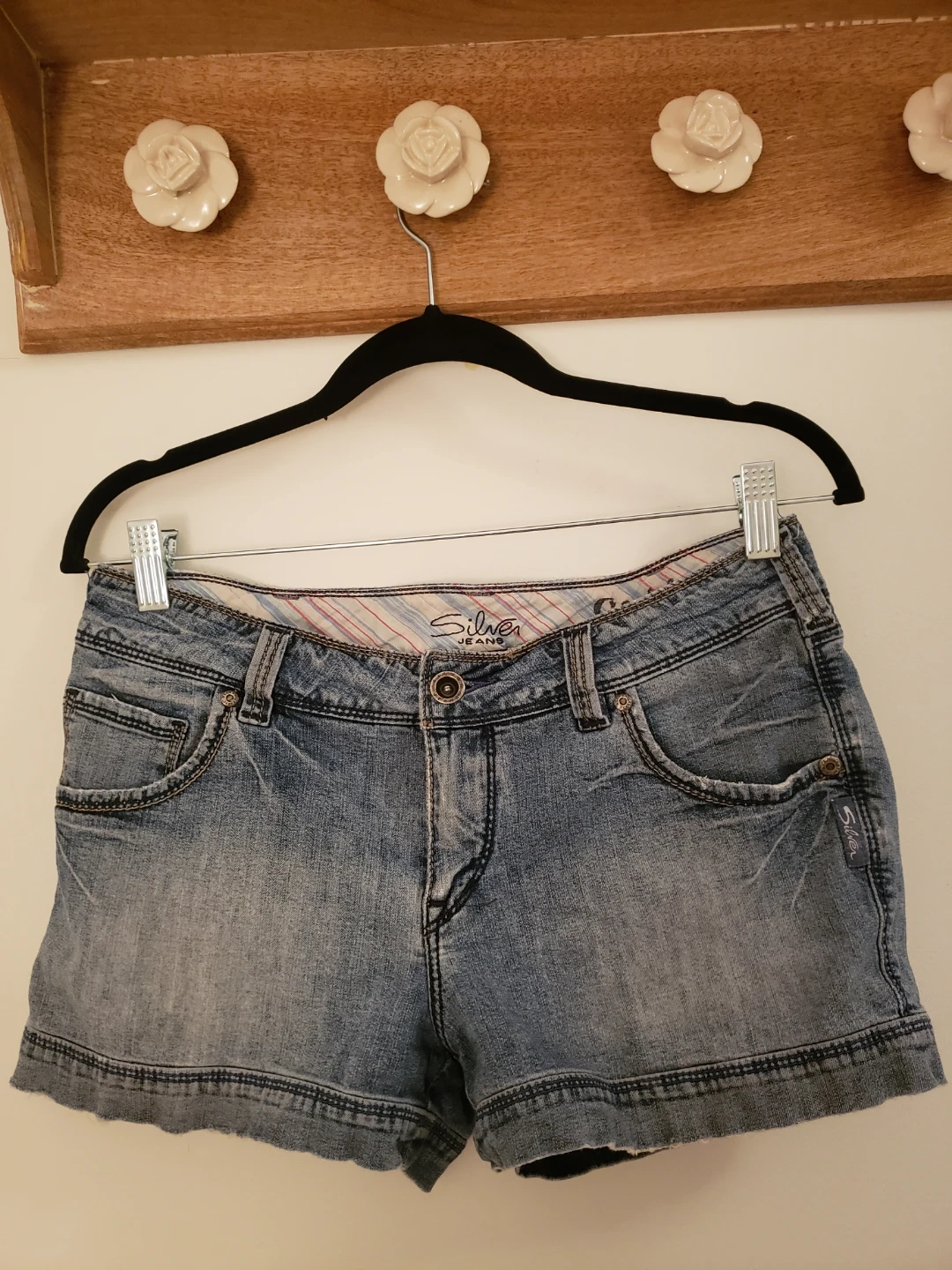 Light wash denim shorts from Silver Jeans Co. They are a size 30 and are super cute for the upcoming hot seasons.