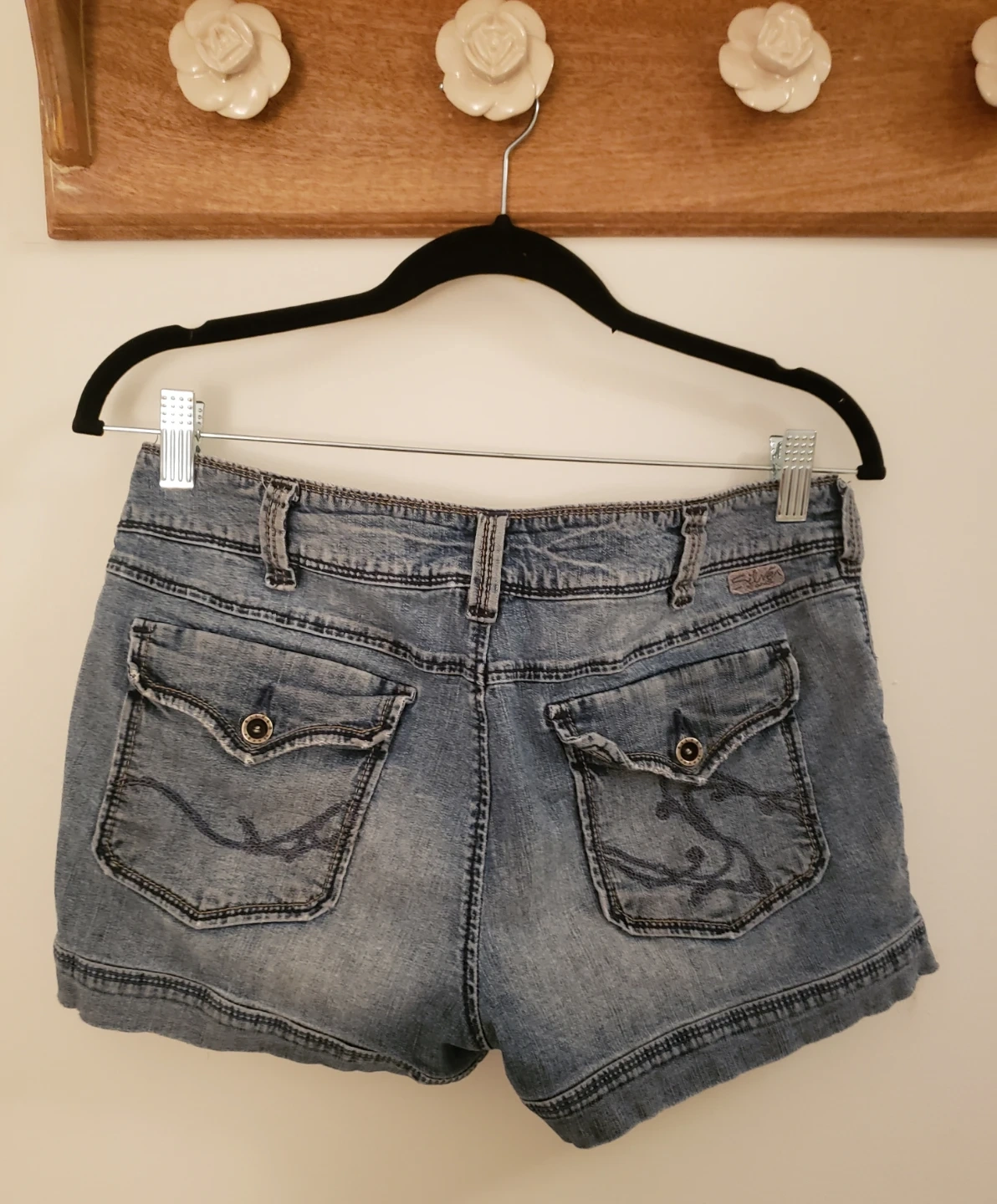 Light wash denim shorts from Silver Jeans Co. They are a size 30 and are super cute for the upcoming hot seasons.