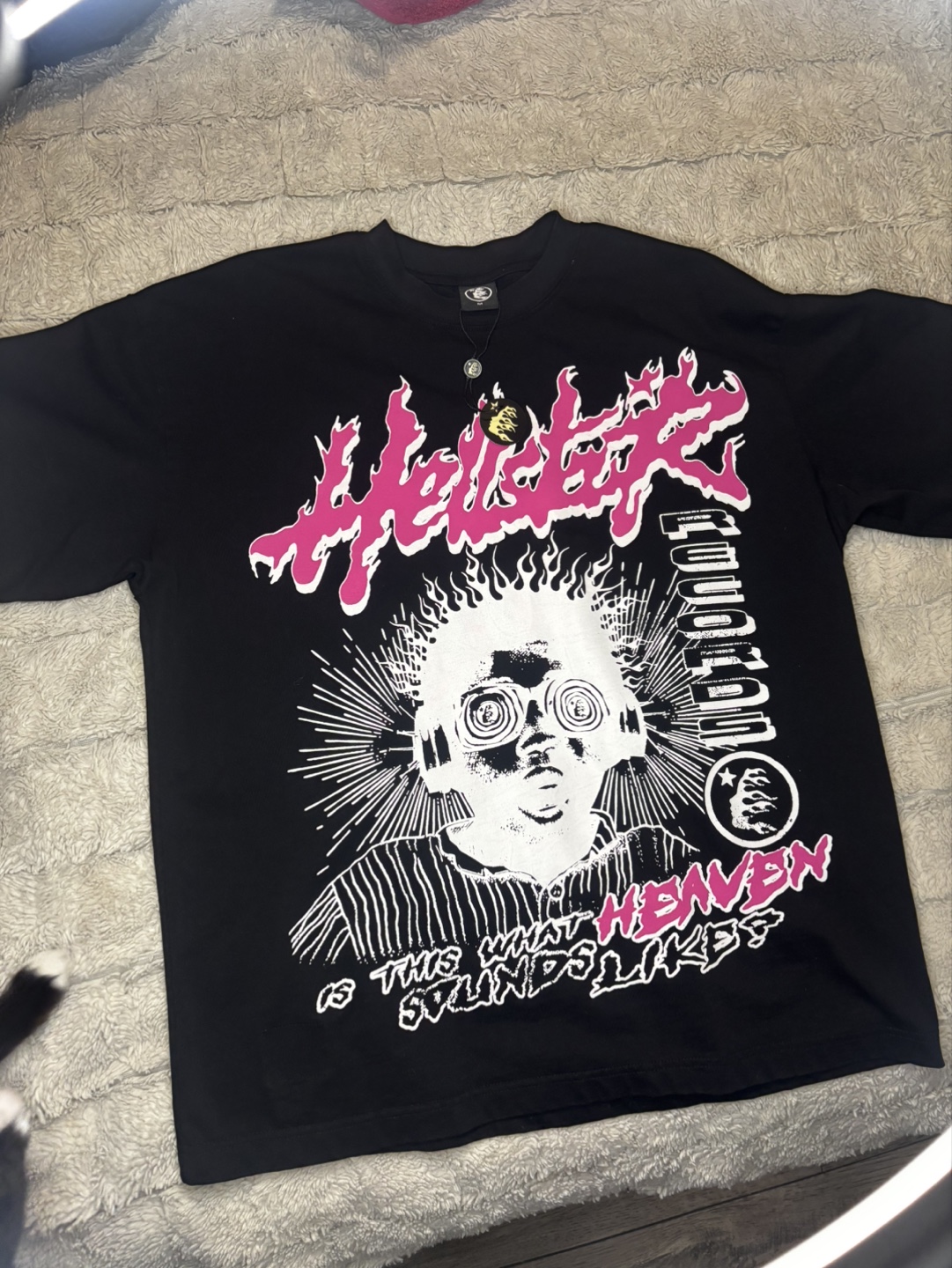 Two Hellstar graphic tees. One black, one off-white. Unique designs. Short sleeves. Crew neck.