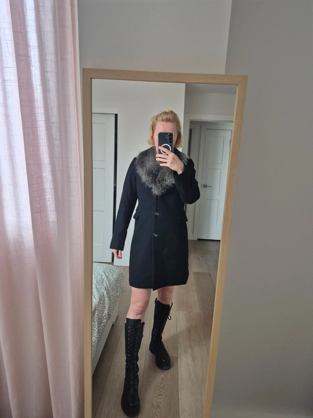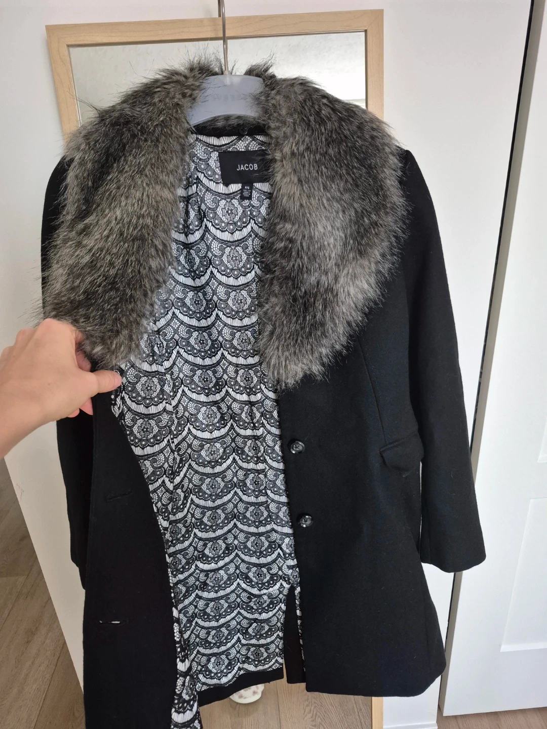 Like-new women’s wool-blend coat by Jacob, size S. Elegant and warm, with a detachable fur collar so you can switch up the look. Only worn a couple of times and professionally dry cleaned after the last use. In excellent condition and ready for a new home.