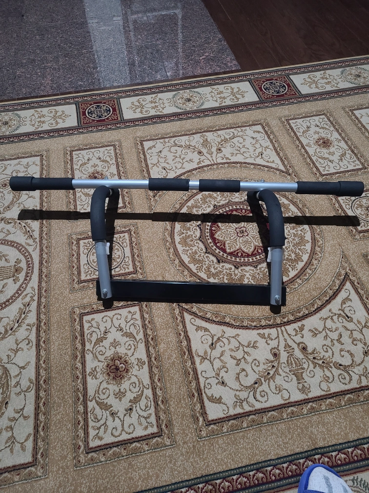 This doorway pull-up bar is made of metal and features padded grips for comfort. It's designed for home fitness workouts. Easily mountable for pull-ups and chin-ups!