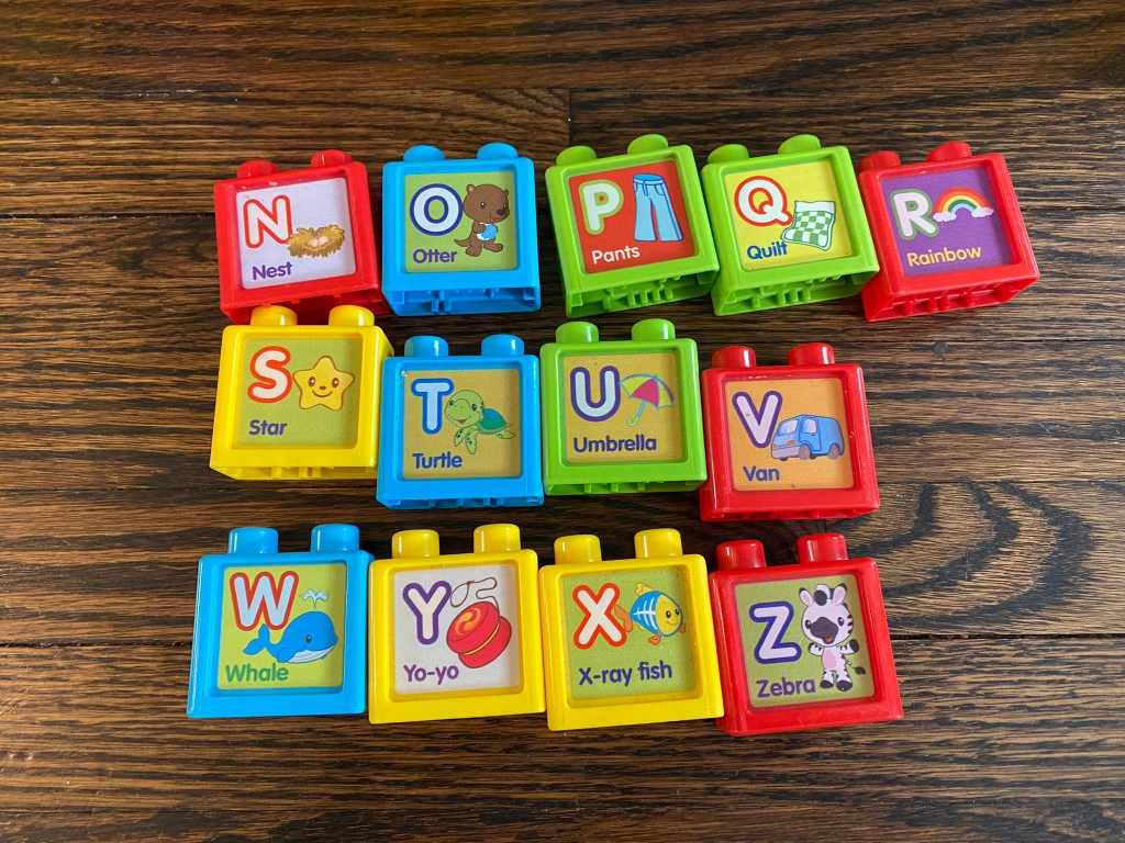 Pre-owned VTech Alphabet Train and 26 alphabet blocks. Great for learning. Blocks feature colourful images and corresponding letters. Train features interactive activities and sounds. Some wear and tear. pick up Mississauga or Brampton Area can deliver for a extra fee