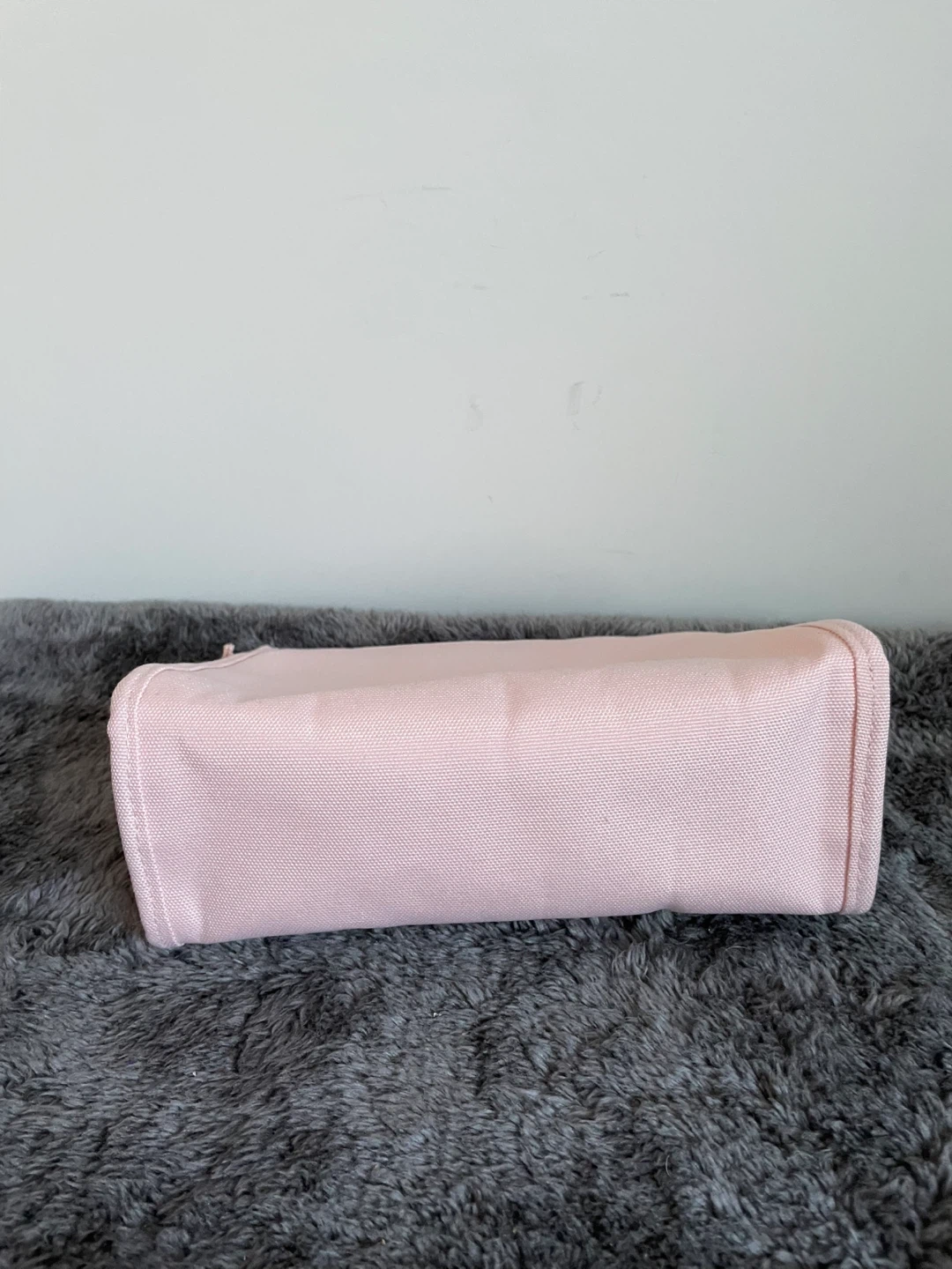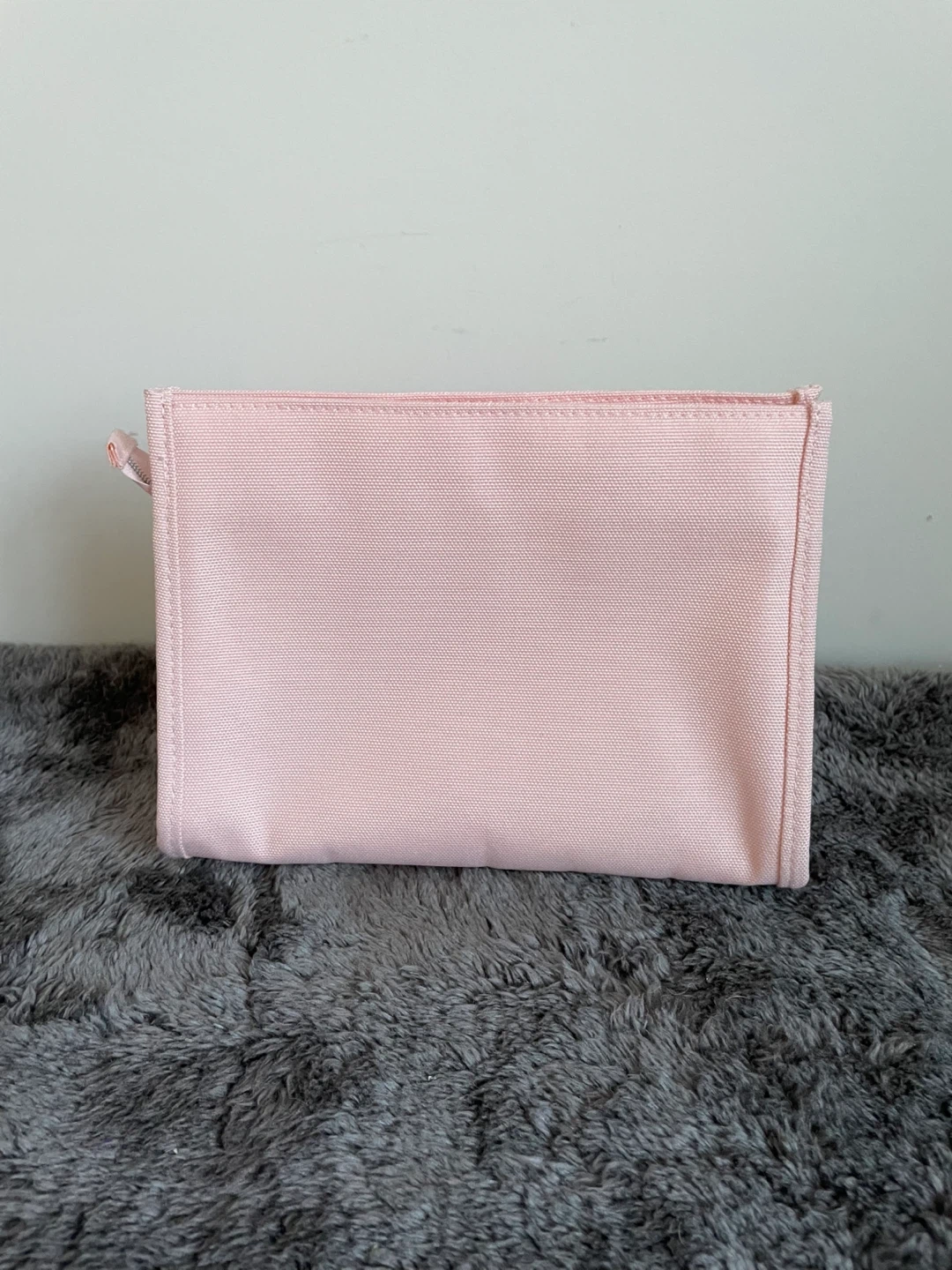This is a light pink Christian Dior pouch. It's made of canvas material. It's a nice size for carrying essentials.