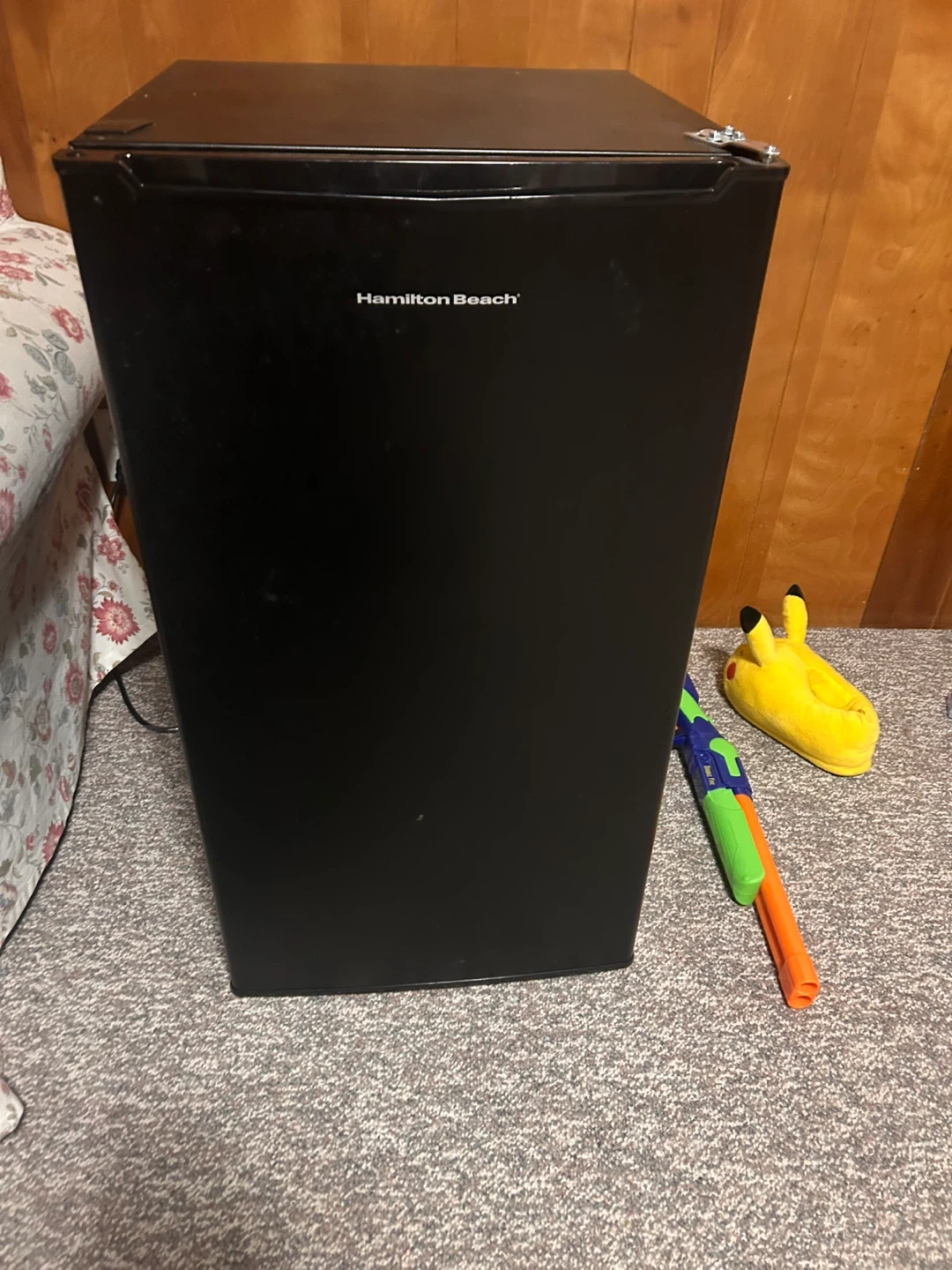 Selling a black mini fridge by Hamilton Beach. It's perfect for a small room, office, or just to keep your drinks cold. Great for small spaces. Great conditions