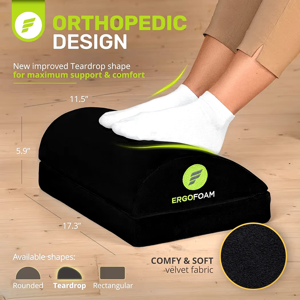 This ErgoFoam footrest pillow features an orthopedic design for maximum support.Covers can be removed to be washed. Measurements are 17.3" L x 11.5" W x 5.9" H.