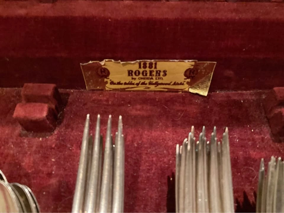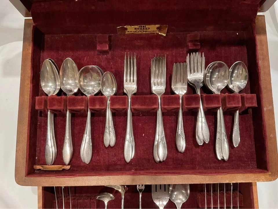 Vintage 1881 Rogers Oneida Silverware Set Wood Case