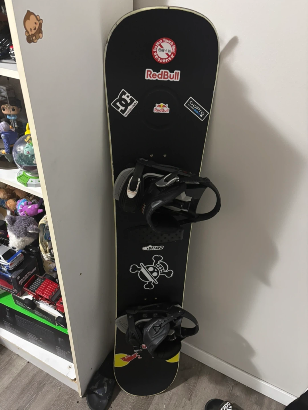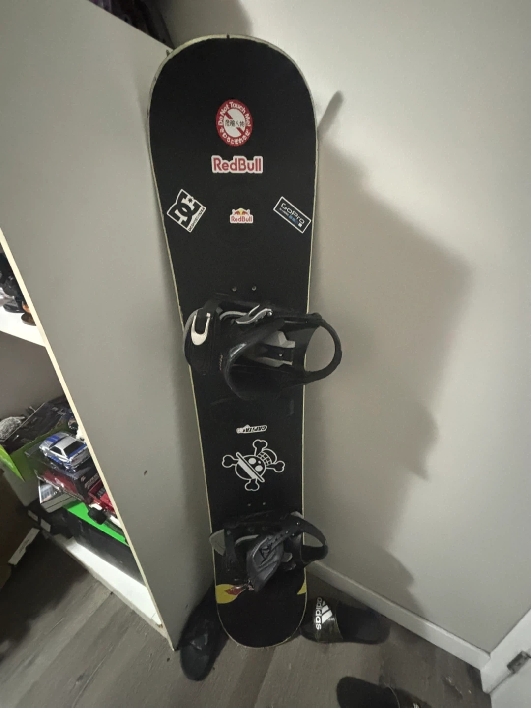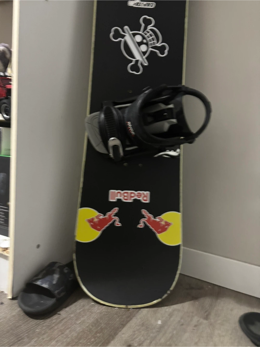 This is an Oxygen snowboard with bindings. It comes with 1 extra M-size ride binding, but the right binding has a broken strap. It's still wearable and doesn't affect rides. It's 153cm and an M-size slim brand binding. Great for hitting the slopes!