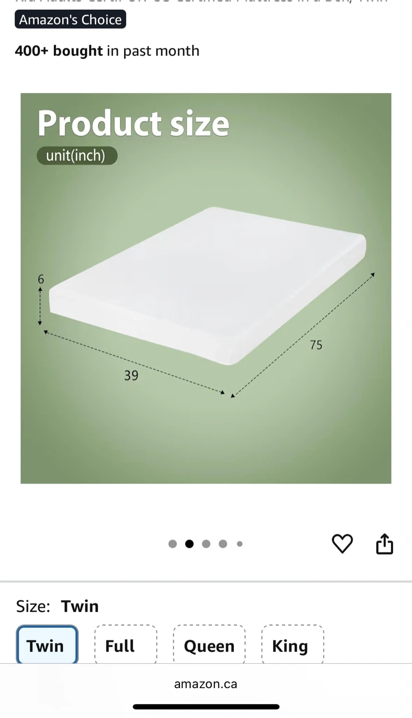 Selling a twin-size mattress that's 6 inches thick! It's designed for a soft fit and to fully release pressure, so you can listen to music, read, or binge-watch in comfort. The dimensions are 39 inches by 75 inches.