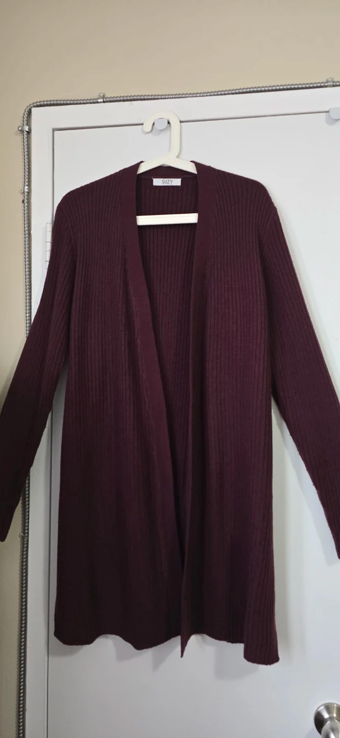 Buy & SellSuzy Ribbed CardiganSuzy Ribbed Cardigan$18A Suzy brand ribbed cardigan. This open-front sweater is a deep plum colour. It's made of a soft knit material.ConditionLike newWHERE TO MEETCheck LocationView MapSELLERTanveerBathurst Manor13310 reviews0 chats·0 favorites·4 viewsSEND CHAT TO SELLERHi Tanveer! I’m interested in your listing.Hi Tanveer! I’m interested in your listing.Get the Karrot app to chatSign In to chat