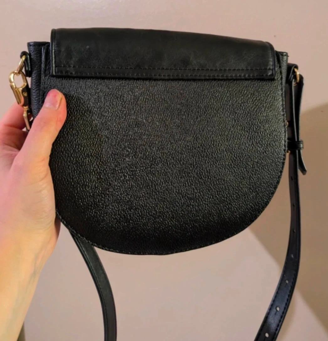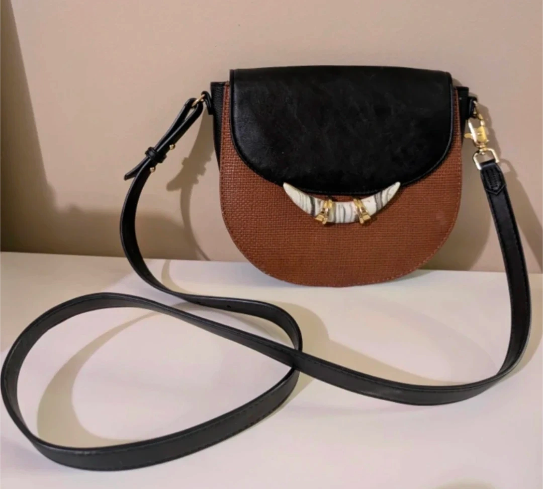 Brown and Black Saddle Bag with Tusk-like Clasp