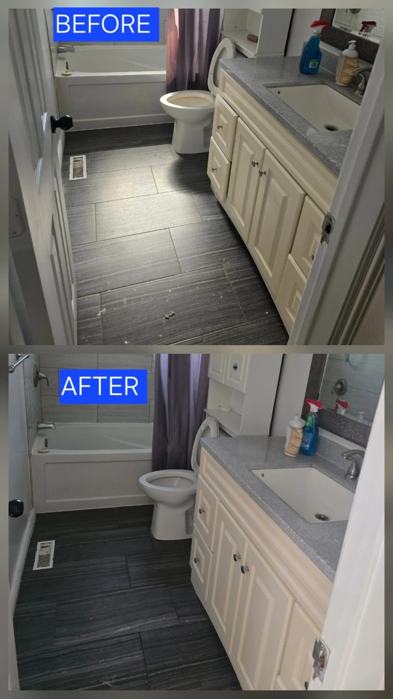 Showcasing professional cleaning services that transform living spaces. Results highlight a deep clean of residential interiors including floors, bathrooms, and kitchens. Experience a refreshed home environment with meticulous attention to detail.