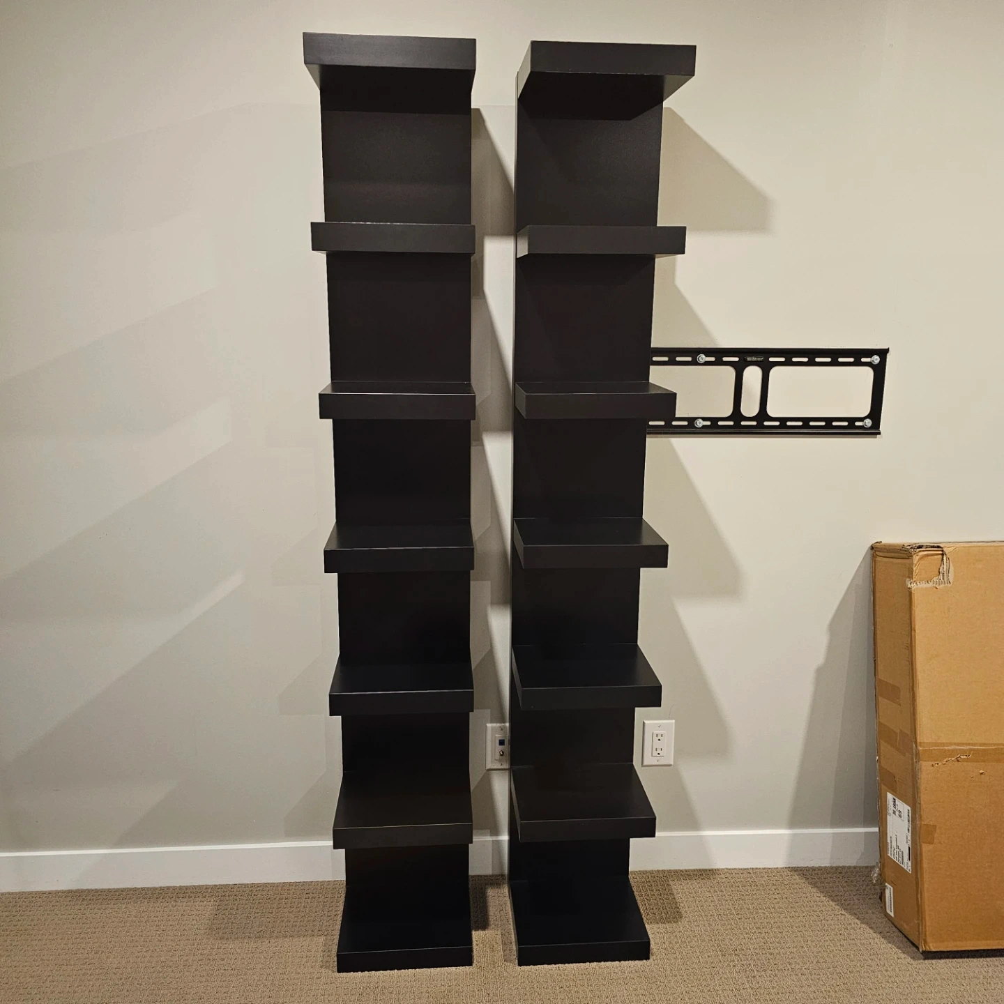 Ikea sells them for $99/each+tax. Selling both together for $90. Screws for wall mounting can be purchased at Ikea (they're sold separately and I never bought them, as I did not mount the shelves).