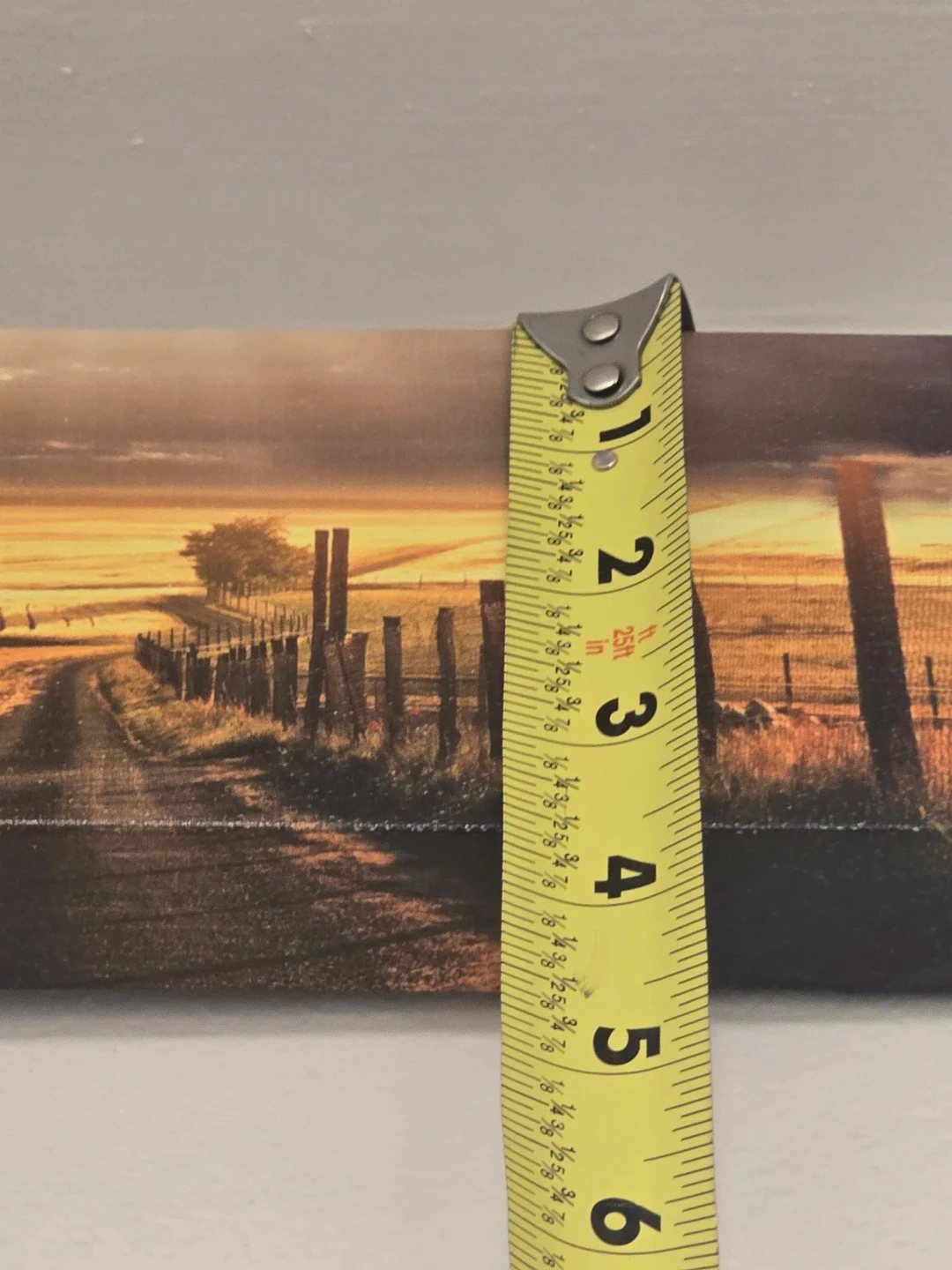 Canvas wall art featuring a landscape scene with the quote "To walk in nature is to Witness a thousand Natural Miracles". It's approximately 10.5 inches wide and 5 inches tall. This piece is printed on canvas.