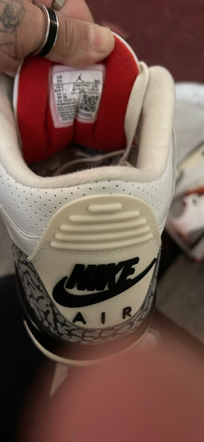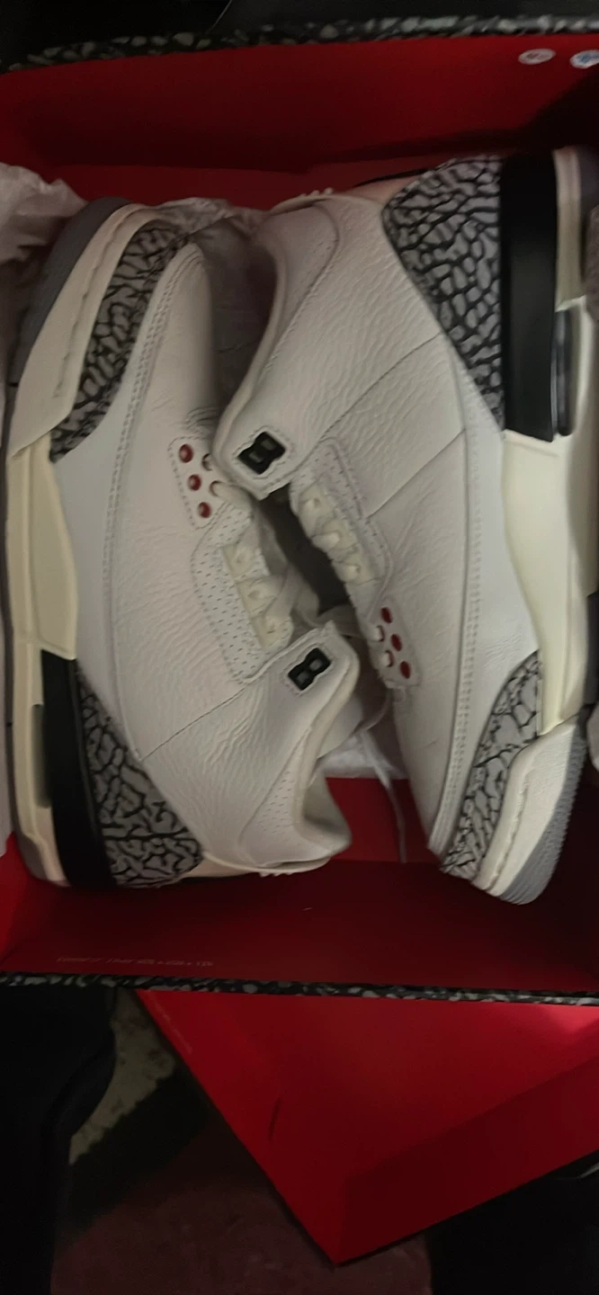 Selling a pair of Nike Air Jordan 3 Retro cements sneakers. They come with the original box. Check out the photos for the condition! Have 3 pairs these come out every 10 yrs or so only if they do at again last dropped 1989,1999, 2023 Jordan 3 retro OG Cements have 3 pairs 1 -6.5y…7y and then regular 7men fits like a 7.5 great sneakers definitely collector sneakers but also great to wear when buying some have a limit of 1 per person every Jordan I’ve listed and still listing all had max 1 per person so get 1 from say footlocker 1 Nike online 1 jimmy jazz or stadium goods or champs… in boxes brand new