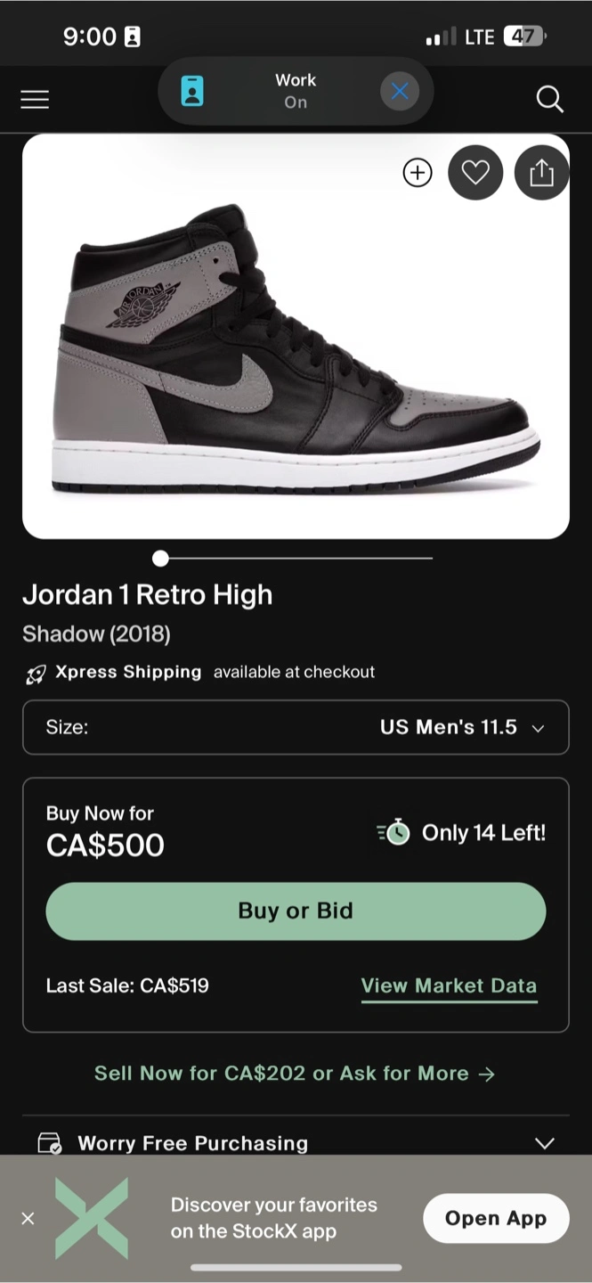 Jordan shadow 1, US size 10.5