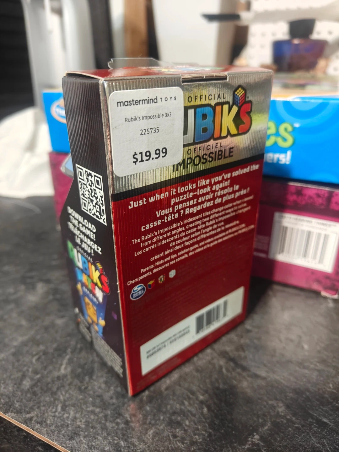 Selling a brand new Rubik's Impossible 3x3 cube! It's still in its original packaging and ready for a new home with someone who loves a challenge. This cube features iridescent tiles that change colours when viewed from different angles, making it even more mind-bending than the original Rubik's Cube. Originally bought for $19.99!