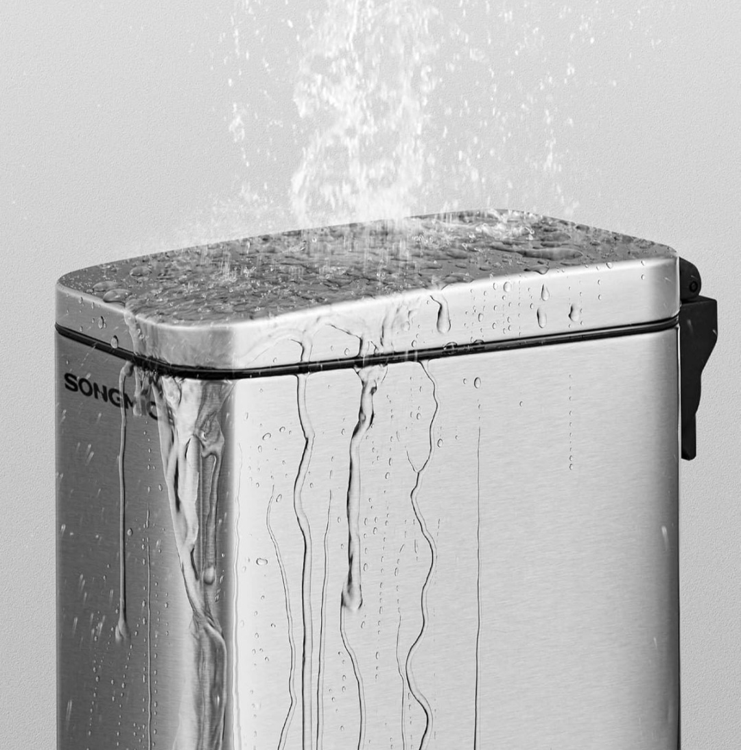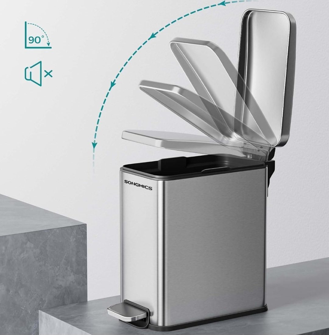 SONGMICS LTB561E10V1 Slim Trash Can, Width 6.7 inches (17 cm), Lid Included, 3.2 gal (10 L), Pedal Type, Small Dust Box, For Kitchen, Living Room, Washroom Gap, Quiet, Space Saving, Stainless Steel